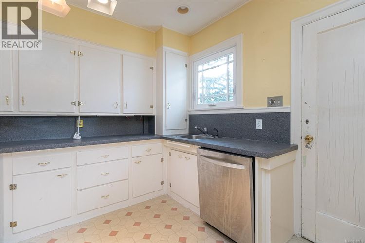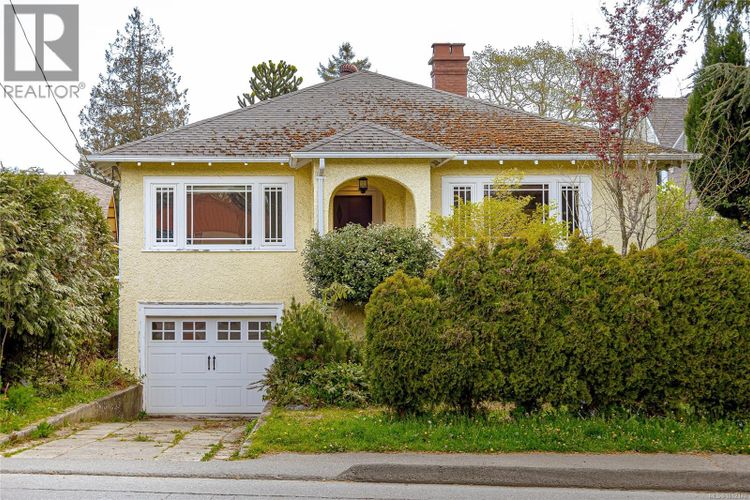 Steeped in charm & bursting with potential, this 1934 home offers nearly 1,900 sq ft of living space across two levels, tucked into a 6,000+ sq ft lot in one of Victoria’s most desirable neighbourhoods. With top-rated public and private schools nearby, plus quick access to UVic, Camosun College, Hillside Mall & the Oak Bay border, the location offers unbeatable convenience for families, students, or investors alike. Original hardwood floors, a wood-burning fireplace & classic built-ins with leaded glass doors set the tone in the cozy living room. The kitchen holds onto its retro vibe while offering updated stainless steel appliances & a sunny dining nook with a lovely view of the mature monkey tree out back. From the rear mudroom, step out into a private backyard surrounded by mature trees & landscaping. The main bathroom has been refreshed and features tiled surround, a newer vanity, and a deep tub. Downstairs, discover a flexible lower level with unfinished storage, a laundry area, and access to the single-car garage. A separate side entrance leads to a one-bedroom in-law space with a compact kitchen, updated 3-piece bath, and open-concept living/sleeping area—ideal for extended family, a student rental, or even a rec room. Whether you're dreaming of a stylish renovation project, a long-term investment, or your very first home in a vibrant, central location, this character-filled property offers endless possibilities. (id:26452)