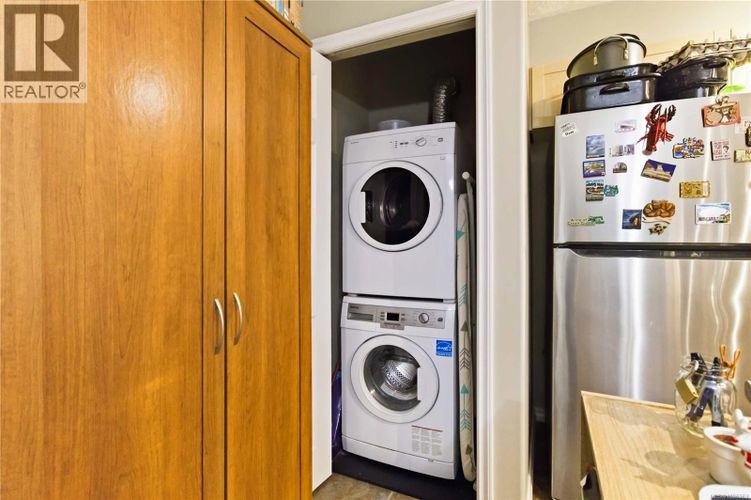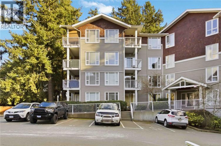 Welcome to Metro Park Plaza! This is an excellent 1 bedroom 1 bathroom condo that has been well taken care of and shows pride in ownership throughout! This home is located walking distance to all amenities that Langford has to offer including the newly built University, Restaurants, Pubs, Shopping, Grocery, Doctors, Dentists, St Anthonys Clinic, Walking Trails and so much more! Strata is in process of upgrading to key fob system and surveillance cameras! Enter inside to find an open concept layout with a center kitchen island, open kitchen space, spacious area for your dining room and a large living room with electric fireplace for cozy heat! The bedroom is spacious and will accommodate a king-sized bed, main bathroom is a 4 piece with a nice bathtub and you have a laundry space as well! Do not forget about your Balcony that is located on the quiet side of the building. The balcony is facing a space that the City of Langford will be turning into a very large Municipal Park area called Woodlands Park which will make for a great quiet outlook (Buyer to satisfy themselves with what that space will turn into). This unit comes with a STORAGE LOCKER as well as one PARKING STALL. Do not wait, book your showing today! (id:26452)