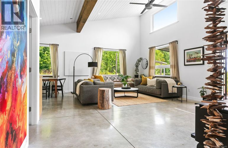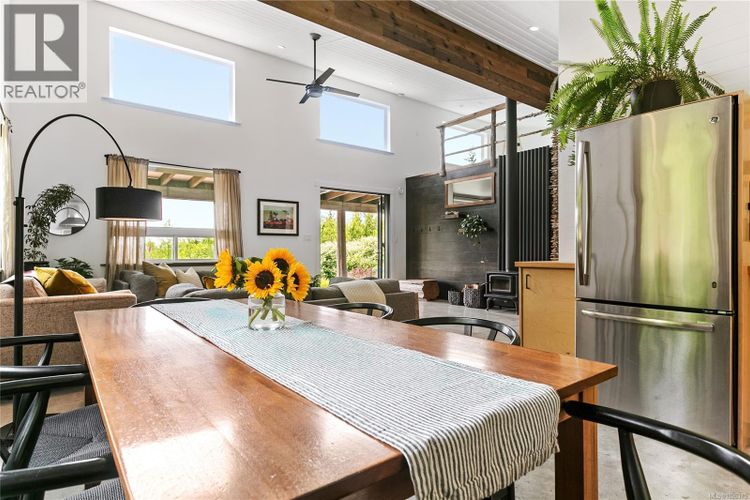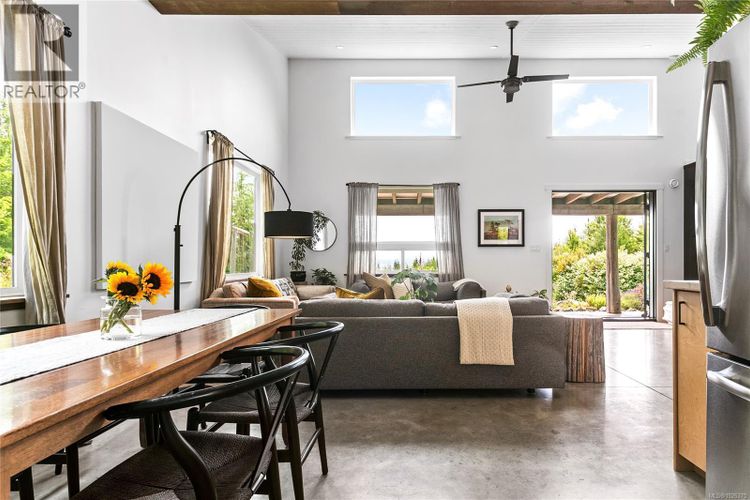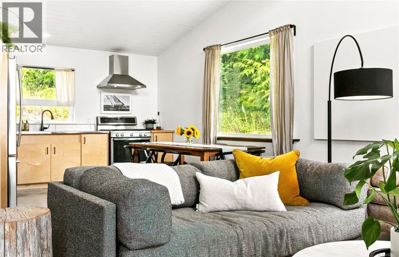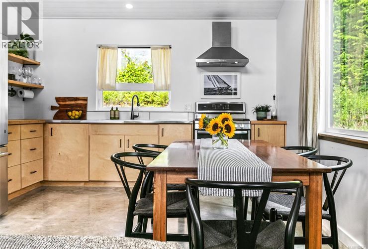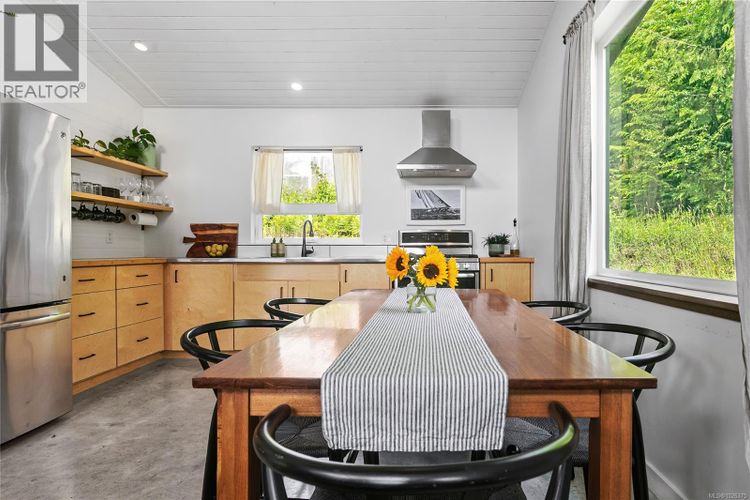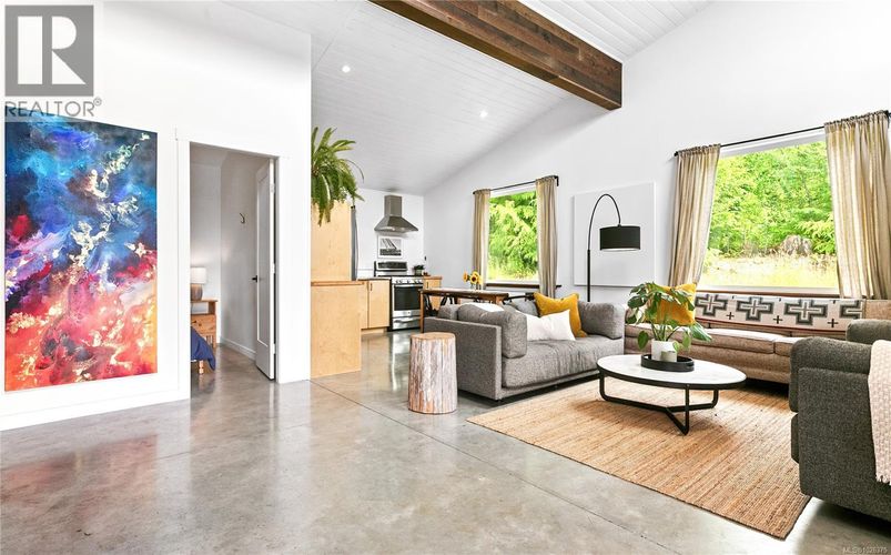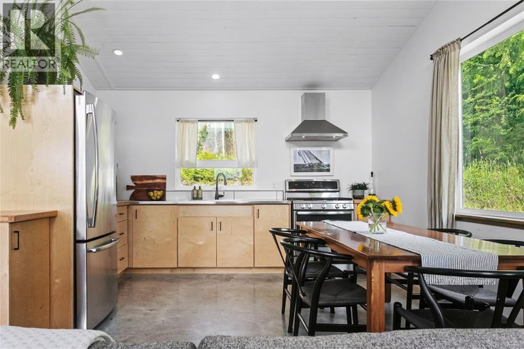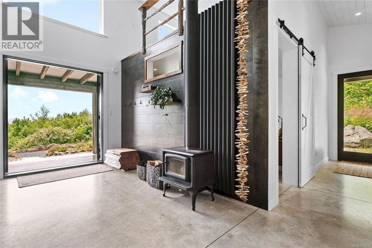 Tucked away on 2.62 acres of natural beauty, this 3-bedroom, 1-bath modern retreat in Jordan River offers the perfect West Coast escape. Thoughtfully designed with over 1,200 sq ft of open-concept living, the home features polished concrete floors with in-floor radiant heating, a cozy wood-burning stove, and large windows that frame serene forest and mountain views. The spacious kitchen and living area open to a covered patio—ideal for relaxing or entertaining. After a day surfing at nearby Jordan River or hiking the Juan de Fuca Trail, rinse off in your private outdoor shower. The property backs onto Second Creek and includes a greenhouse, orchard, and seasonal pond, creating a peaceful, self-sustaining lifestyle. Adventure and amenities are close at hand with local favourites like Shirley Delicious and Cold Shoulder Café just a short drive away. Whether you're looking for a full-time home or a weekend getaway, this is a rare opportunity to live immersed in nature on Vancouver Island. (id:26452)