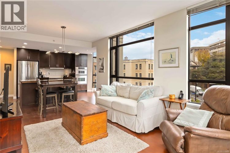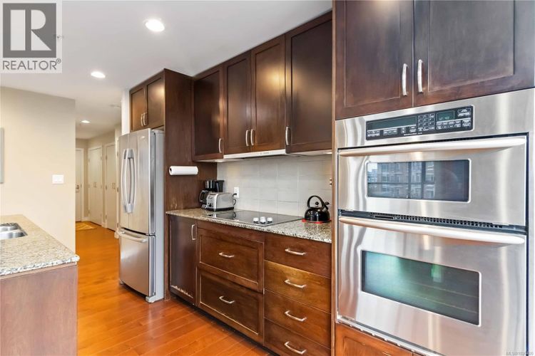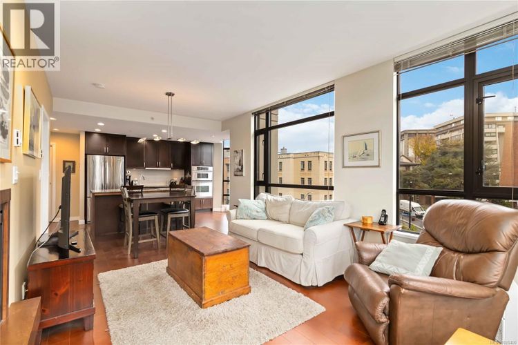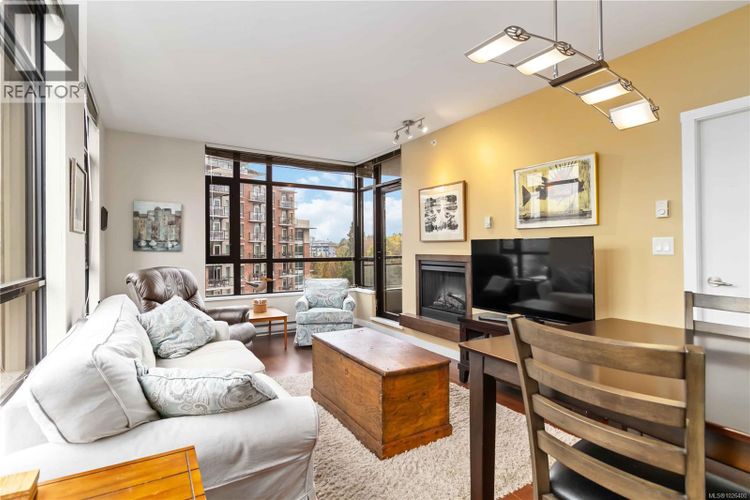 Welcome to Suite 603 at The Belvedere, a 2BR 2BA -1,050 SQFT corner unit in the sought-after steel & concrete building by Concert Properties in Victoria’s vibrant Humboldt Valley. This immaculate bright corner home offers walls of windows on three sides, flooding the space with natural light & showcasing treed city views. The open layout features a timeless kitchen with quartz counters, double oven, backsplash, & stainless appliances w/ hardwood floors throughout. The spacious primary suite includes double closets, full ensuite, & private balcony; the second bedroom is well separated with big windows. Private living room w/ Cozy fireplace & very functional floor plan with 2 balconies. Enjoy secure underground parking, storage, EV-ready options, fitness rooms, bike storage, & event space. Steps to the Inner Harbour, Empress Hotel, St Ann’s, Beacon Hill Park, & Downtown dining—pets & rentals welcome! Amazing walk score & lifestyle, tucked away from inner Downtown in the Humboldt valley! (id:26452)