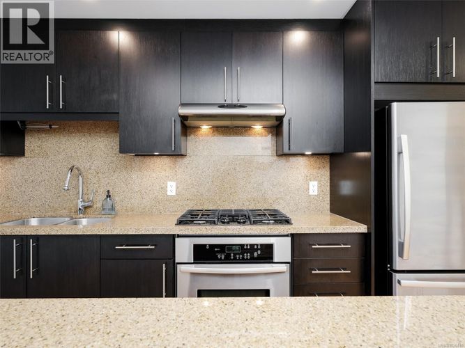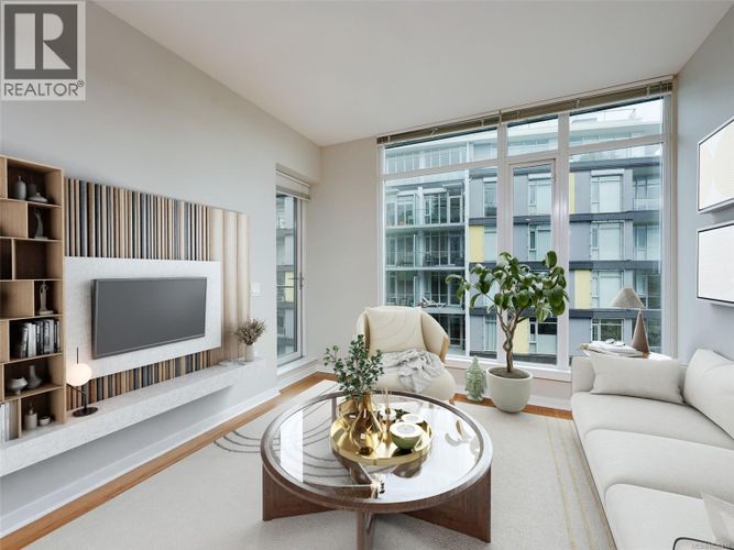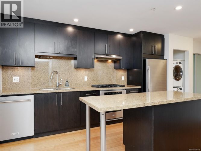 Welcome to Balance at Dockside Green—one of Victoria’s most desirable waterfront communities. This 7th floor 1 bed, 1 bath condo offers 608 sqft of thoughtfully designed living space with bamboo floors and views of the Victoria Harbour. Floor-to-ceiling windows fill the home with natural light, while the open kitchen features granite countertops, stainless appliances, and a gas range. Extensive updates include a new dishwasher, new washer/dryer, new closet doors, new carpet in the bedroom, and new ceiling light fixtures, making this home truly move-in ready. Enjoy secure parking, storage, Pet Friendly Bylaws and a LEED Platinum building focused on sustainability. Bike storage makes it easy to access the Galloping Goose and scenic harbour pathways just outside your door. All this just steps to cafés, shopping, waterfront trails, and an easy walk to downtown Victoria. Exceptional value in a world-class waterfront community. (id:26452)