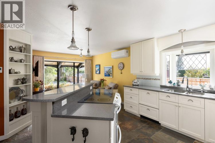 Tucked into the heart of Deep Cove, this exceptional property blends coastal charm with refined living. On over half an acre of sunny, south-facing land, it’s a peaceful retreat just steps from beach access and forested trails, perfectly balancing nature and lifestyle. The 1,504 sq ft rancher is beautifully finished with two elegant bathrooms, one with a free-standing soaker tub, the other with a built-in shower, heated slate floors, hardwood in the main areas, and a cosy propane fireplace. A dedicated office/den offers versatility, while the custom kitchen is a chef’s dream with quartz counters, custom cabinetry, a two-drawer dishwasher and under-mount lighting. French doors open to a private patio, framed with retractable screens for effortless indoor-outdoor flow. These are rooms you are going to love walking into! Other thoughtful touches include custom window coverings, a utility room with built-in cabinetry, and an attached garage with epoxy flooring, bump-out storage, and organised recycling. A beautifully renovated second building offers endless potential - guest suite, studio, or multigenerational living. It features a large bedroom with coffered ceiling and dual closets, an open living area with a pellet stove and storage, a kitchen with French doors, and a modern 3-piece bath. The oversized garage and workshop includes 10’ ceilings, utility sink, keyless entry, and epoxy flooring. The yard is immaculately landscaped with raised veggie beds, metal and cedar fencing, arbours, an automated sprinkler system, and charming front and rear patios. Ample parking, a Sani-dump for your RV, and elegant curb lighting complete this rare offering. Every detail of this property speaks of comfort, craftsmanship, and West Coast serenity. Welcome to your coastal sanctuary in Deep Cove! (id:26452)