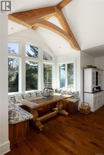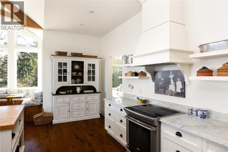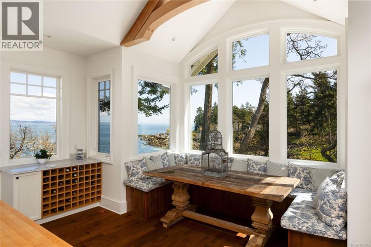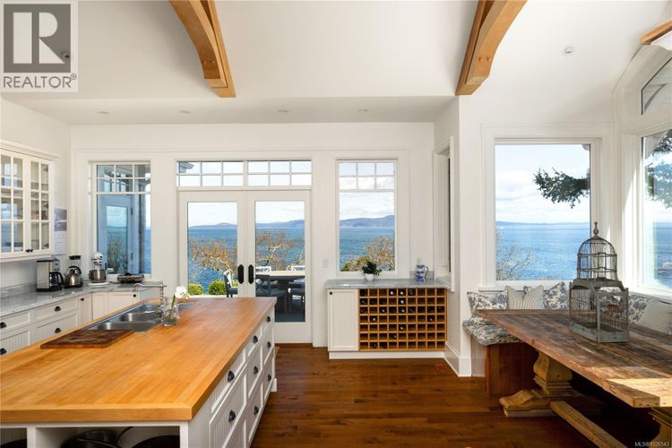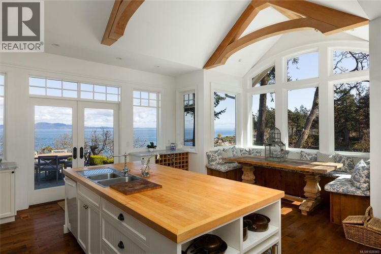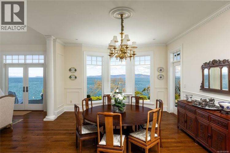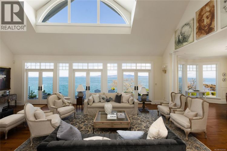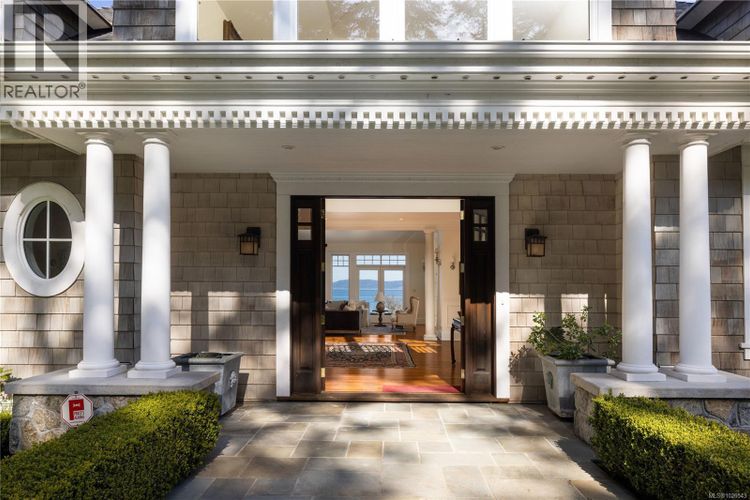 Welcome to 2600 Queenswood Drive, an extraordinary oceanfront retreat nestled on nearly 2.8 acres in one of Vancouver Island’s most prestigious enclaves. Gated and private, with the potential to subdivide, this timeless estate offers panoramic views of the Haro Strait, Gulf Islands, and Mt. Baker. The Hamptons-style residence blends classic East Coast charm with West Coast ease, featuring more than 6,000 sqft of beautifully curated living space. Soaring ceilings, expansive windows, and a seamless connection to the outdoors define the main level, which includes a sophisticated living room, elegant dining area, a hand built Walnut library/media room, and a chef’s kitchen designed for both function and flair. The main floor primary suite is a true sanctuary, while the upper level offers 3 additional bedrooms, 2 with ensuite. A walkout lower level includes a flexible studio or guest quarters. Lush landscaping, stone pathways, a private launch point for kayaking, and a detached 3-car heated garage with gardener’s toilet complete this rare seaside setting—just minutes to Cadboro Bay Village and UVic. (id:26452)