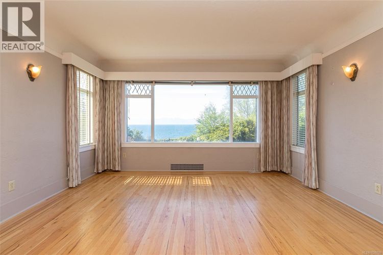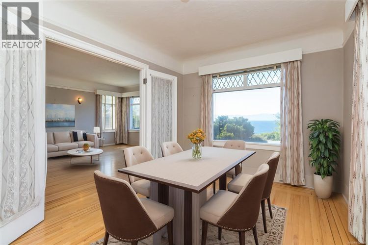 Imagine living right across the OCEANFRONT on Dallas Road, steps to Mile Zero and Beacon Hill Park. The breakwater and beach access is literally across the street. This 1938 character home with four bedrooms and three bathrooms offers panoramic OCEAN VIEWS all the way across to the Olympic Mountains. The original OAK HARDWOOD floors with walnut inlay adorn the living room and formal dining room. The wood fireplace centers the living room in this art deco home. The full basement with walk out access and GARAGE is ready for your personal touches. A separate one bedroom suite is self contained on the upper level and has its own private entrance on the back. Natural gas is connected for the hot water tank and the furnace is low maintenance electric. Perfect for the investor and/or homeowner, the location & Duplex Zoning of this property is arguably some of the best offered in Victoria. Please see both the YouTube video & 3D Matterport Tours. (id:26452)