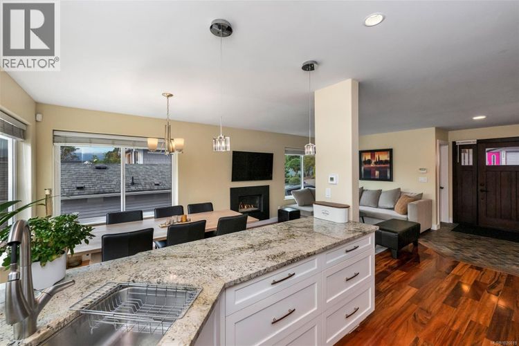 Tucked away in the peaceful charm of Brentwood Bay, this home offers a rare blend of tranquility, flexibility, and stunning western views of the bay’s seaside activity. Whether you need 4 bedrooms or 3 plus a dedicated office/den, the layout is designed for modern living with a ''lock-up-and-go'' design. The main floor features two bedrooms, an open concept living room with cozy gas fireplace, dining area, kitchen, and a large laundry room. Upstairs, the primary suite is a true sanctuary, featuring a spa-like ensuite, generous walk-in closet, and a large south-facing deck with panoramic views of the water. A second upstairs bedroom also enjoys breathtaking vistas, along with a guest bathroom. Other features include a spacious garage and parking both front and back. A 900 sq. ft. crawl space with accessible storage and 200-amp service with room for electric vehicle charging. Ideally positioned for island exploration, you are within 30 minutes from downtown, the Western Communities, and major travel hubs like the airport and BC Ferries. The Mill Bay ferry is minutes away for those heading up island, while Butchart Gardens is just a scenic 45-minute walk from your door. Whether you're seeking quiet comfort or a launchpad for adventure, this home delivers in one of the region’s most idyllic settings. (id:26452)