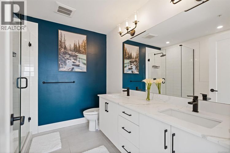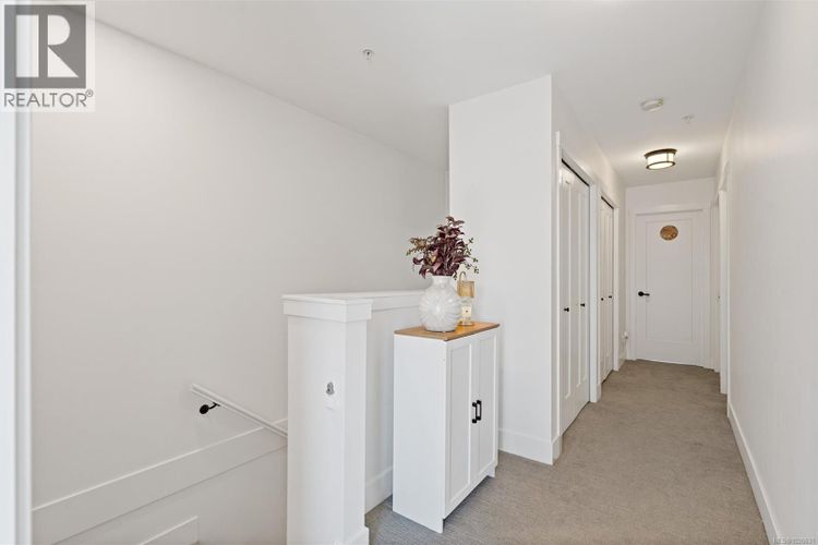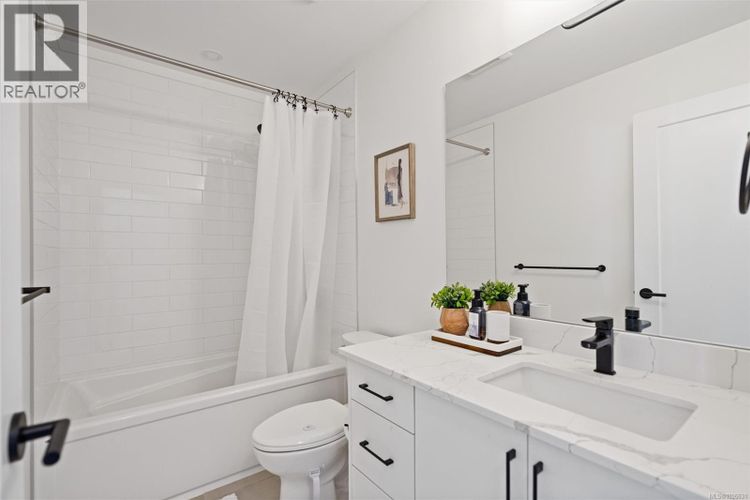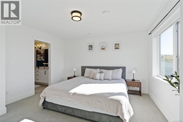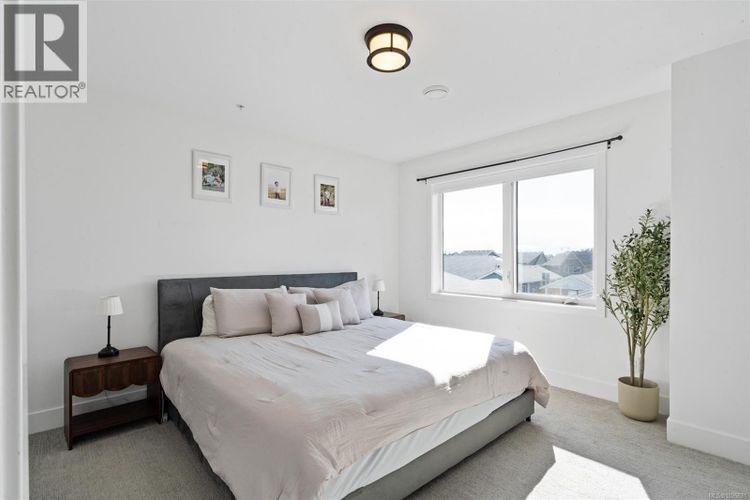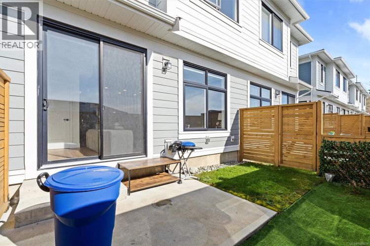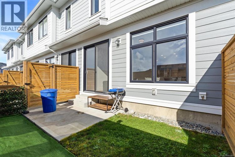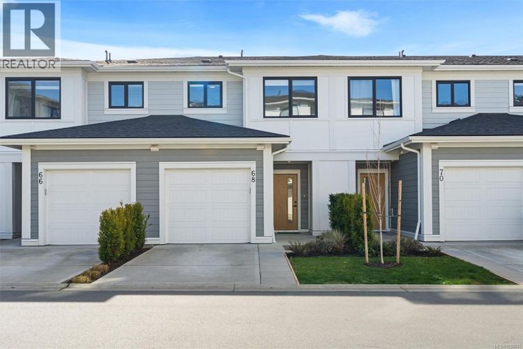 Welcome to this beautifully appointed two-level townhome in the heart of Royal Bay. Offering 3 bedrooms and 3 bathrooms, this stylish and spacious home delivers a welcoming, house-like feel with the convenience of strata living. Step inside to a bright main floor with 9’ ceilings and an airy open-concept layout designed for comfortable everyday living and effortless entertaining. The chef-inspired kitchen features quartz countertops throughout, a gas stove and sleek stainless appliances, seamlessly connecting the dining and living areas for a modern, cohesive space. Upstairs, the impressive primary retreat captures stunning Olympic Mountain views and includes a walk-in closet with its own window and a spa-inspired 5-piece ensuite. Two additional bedrooms laundry and a full bathroom complete the upper level, offering flexibility for family, guests, or a home office. Enjoy low-maintenance outdoor living with a landscaped yard cared for by the strata. A full driveway plus a garage provide ample parking and storage — a rare bonus in townhome living. Perfectly suited for downsizers or families, this home is just steps to the ocean, the up-and-coming Royal Bay Shopping Village, and all levels of schools and parks. Close to every Westshore amenity and only 25 minutes to downtown Victoria. Pet-friendly strata. a rare opportunity in this sought-after coastal community. (id:26452)