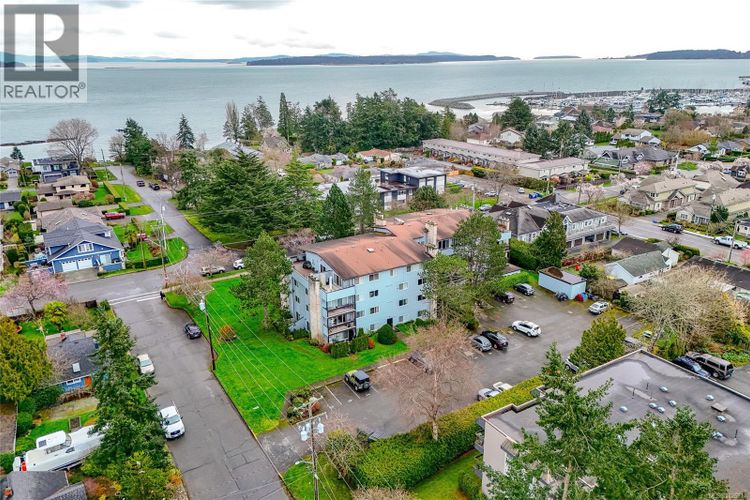 OH SAT MAR 28th 11-1 pm. Just steps from the ocean in multiple directions, this value-priced & beautifully maintained one bed corner unit offers the best of coastal living in the heart of Sidney. With kayaking, paddle boarding & beachcombing practically at your doorstep- and shops, cafés, restaurants & transit only a short stroll away- this location is hard to beat. Inside, the home feels bright & welcoming, featuring a refreshed kitchen, a sizable dining area & a generous living room w/ sunny south-west exposure. Large windows fill the space w/natural light, while a cozy wood-burning f/p adds warmth & charm. Step onto the private west-facing balcony to enjoy afternoon sun & a peaceful spot for your morning coffee. The layout is ideal for first-time buyers, downsizers or possibly to add to your portfolio for the savvy investor. Sidney’s shoreline pathways are moments away, offering daily access to scenic walks & ocean breezes. In-suite laundry, excellent storage & parking.Pet friendly. (id:26452)