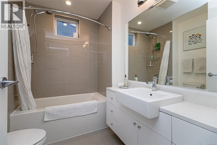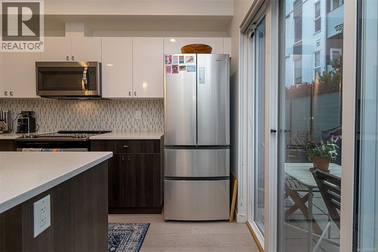 Ideally situated in Vic West’s Railyards, this stylish townhouse offers over 1,224 sq. ft. of finished living space plus a generous 438 sq. ft. patio—perfect for entertaining. The lower entrance includes an office space with a two piece powder room and a back door to your parking. The main level features a modern kitchen with updated appliances, an adjoining dining area, and a spacious living room designed for comfort and gatherings. Upstairs, two bedrooms with master ensuite and second bath adjacent to the guest bedroom. With the primary suite also incudes a private balcony overlooking the Gorge waterway. This home balances functionality and elegance. Easy access to all amenities. Just a 20-minute walk to Chinatown, downtown Victoria, and the Inner Harbour, you’ll enjoy easy access to vibrant city life while residing in a quiet, European-inspired community. Two secure underground parking stalls are included. ** Call your agent today to book a private viewing! (id:26452)
