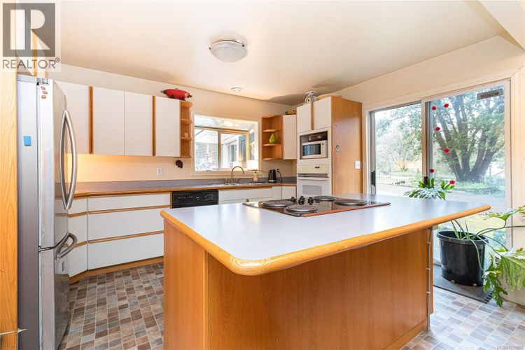 Nestled in the highly sought-after Saanichton Valley sits this 1,785 sq. ft. rancher sits on 1.86 acres, with two quiet country road accesses (850 Bardsey Lane & 8050 Rae-leigh place). Much of the property is a level, pastoral acreage—perfect for a hobby farm or simply enjoying the peace and serenity of country living, all just minutes from Victoria. The home features large picture windows, a skylight, and warm cedar ceilings that create a bright and inviting atmosphere. The spacious living room with a classic brick fireplace flows seamlessly into a country-style kitchen with a generous dining area and cozy wood stove—ideal for family gatherings. The kitchen offers European-style cabinetry, a breakfast bar, built-in cooktop, and wall oven. There are three bedrooms in total, including a spacious primary suite with a private 3-piece ensuite. The additional bedrooms are generously sized, offering flexibility for family or guests. Outside, you’ll find a large 32’ x 24’ detached garage/workshop, along with additional outbuildings including a studio. The setting is truly special, with nearby walking trails and the fresh scent of ocean air enhancing the natural beauty of one of the Saanich Peninsula’s most treasured locations. This is a rare opportunity—call today to experience it for yourself. Call now ''What a difference a Day makes'' (id:26452)
