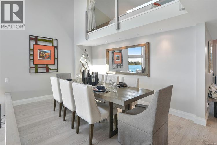 An exceptional waterfront residence set along the coveted Westsong Walkway—where seaside strolls, harbour views, and easy access to downtown Victoria define an elevated lifestyle. One of only four townhomes within a well-managed waterfront complex, this rare offering blends the privacy of a house with the convenience of professional management. Perfectly positioned to capture sweeping south and west-facing views, the home overlooks the Inner Harbour, stretching to Ogden Point, the Olympic Mountains, and West Bay Marina—an ever-changing coastal backdrop that brings a sense of calm and connection to nature. Inside, the home has been thoughtfully reimagined to enhance both livability and its connection to the water. A beautifully designed custom kitchen anchors the main living space, creating a natural flow for everyday living and entertaining. Warm engineered oak flooring runs throughout, while vaulted ceilings and skylights draw in natural light and enhance the sense of space. The upper level offers a loft-style primary suite—an inviting retreat with ensuite and elevated harbour views. A second bedroom and flexible den provide space for guests, work, or relaxation. Residents enjoy the benefits of a well-managed building, with strata fees including heat and hot water, while maintaining the exclusivity of the limited townhouse offering. Just steps to the waterfront pathway, with dining at Spinnakers and Boom + Batten moments away and downtown Victoria within easy reach, this is a rare opportunity to enjoy the very best of coastal living. An ideal offering for those seeking a sophisticated, lock-and-leave lifestyle in one of Victoria’s most sought-after waterfront settings. (id:26452)