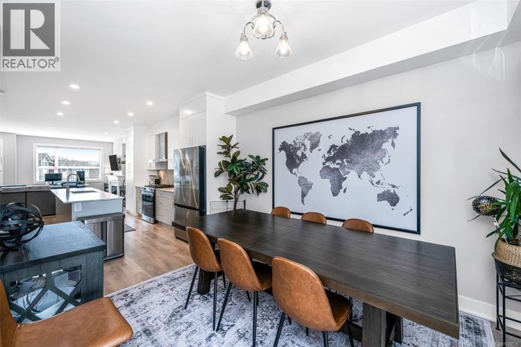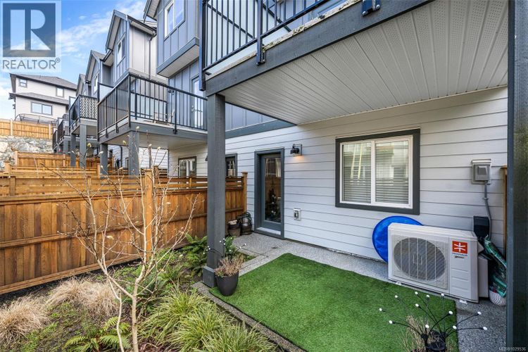 Flexible possession!! Welcome to Atlas Townhomes! This beautifully designed 3-bed, 2.5-bath home offers comfort, style, and flexibility in a family-friendly neighborhood. Enjoy open-concept living with a modern electric fireplace, ductless heat pump, and a sleek kitchen featuring quartz countertops and high-end appliances. Upstairs, the spacious primary bedroom includes a luxurious en-suite, while two additional bedrooms share a full bath—perfect for growing families. The extended garage (42 feet deep) with it's epoxy coated floor offers exciting potential to create up to 250 SqFt of additional living space with just a small wall and door. The fully fenced backyard is perfect for pets. Westhills is built for families, with top schools, parks, trails, YMCA, Langford Lake, vibrant shopping and dining, all just steps away. A fantastic opportunity—book your showing today! (id:26452)