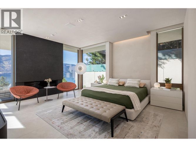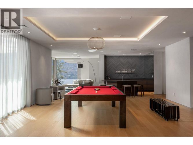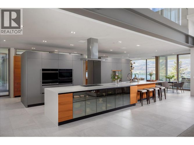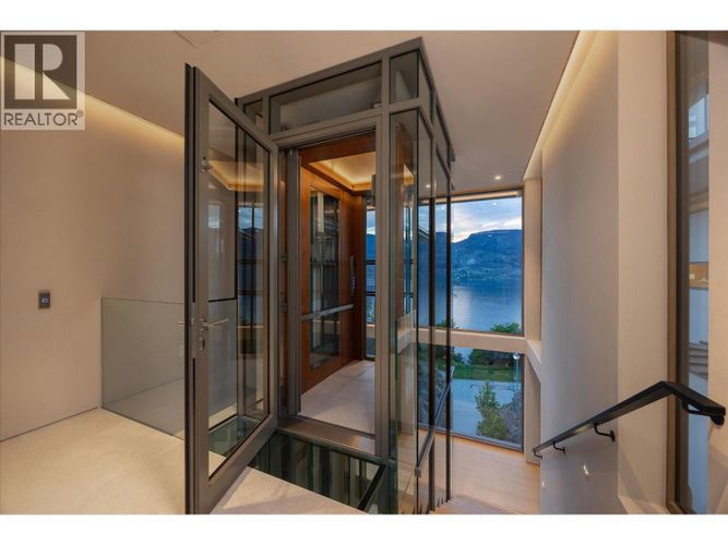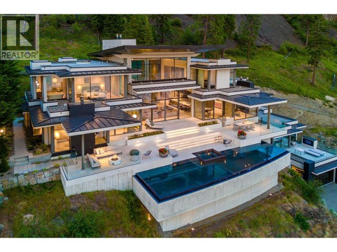 Nestled in exclusive Sheerwater, Mont des Cieux the prestigious 2023 Home of the Year awarded by the Okanagan Housing Awards of Excellence, offers the ultimate lakefront living experience. This luxurious 10,000 square foot custom residence is strategically designed to provide unparalleled privacy and breathtaking views of Okanagan Lake. Constructed primarily of steel, concrete, and glass, this home radiates a sophisticated warmth. The glass-enclosed elevator seamlessly connects the various levels. The expansive great room, featuring soaring ceilings and walls of windows, fills the space with natural light, creating a serene ambiance. Step outside to the infinity pool overlooking Okanagan Lake or find tranquility in the back hillside seating area beside a tiled pond and waterfall, both designed for your relaxation and enjoyment. With cutting-edge mechanical systems, solar panels, and a fully-automated Crestron system, this visionary masterpiece stands out in the Okanagan region. Imported triple-pane windows from Austria, glass panels from Germany, millwork from Italy, furniture from Australia, and gym equipment from Poland all ensure this home is of the highest international standard. Boasting three primary suites, a state-of-the-art theater, and a wine cellar capable of storing over 300 bottles, Mont des Cieux offers a lifestyle of unparalleled luxury and sophistication. Embrace the Okanagan lifestyle with the benefit of lakefront access and your boat slip at the private wharf. (id:26452)