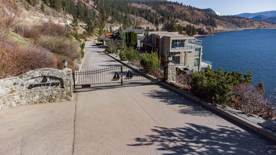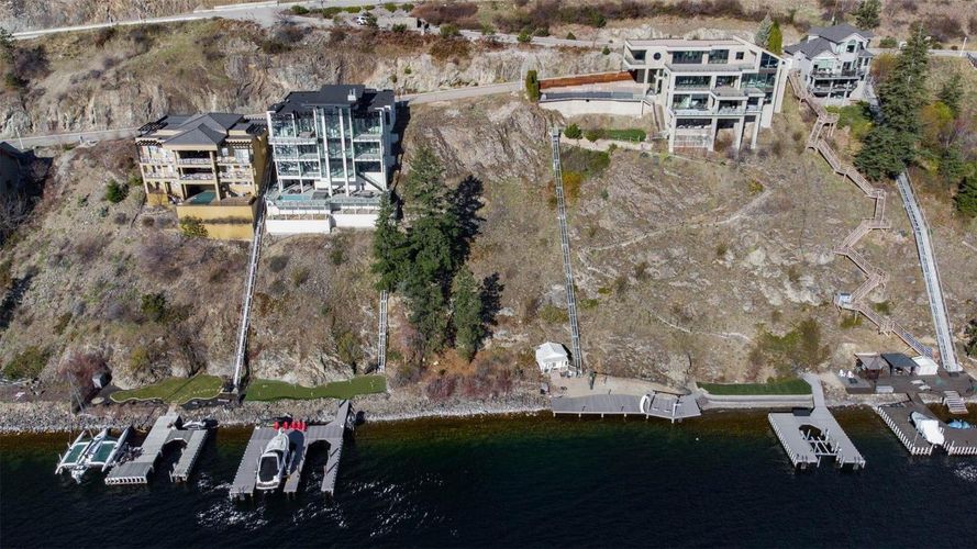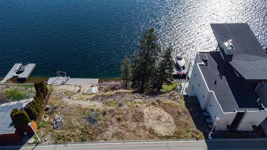 Located just 5 minutes from the bridge and 10 minutes to Downtown Kelowna via Westside Road, this lakefront lot offers the ideal blend of privacy and accessibility. One of only three remaining vacant lots in the prestigious 27-home community of Sailview Bay, this exclusive property showcases panoramic views of Okanagan Lake, the city skyline, and surrounding mountains. With 86 feet of private lake frontage, the lot provides the freedom to design and build your dream home at your own pace—there are no deadlines to begin construction, only timelines once building has commenced. Preliminary plans are available for a 6,000+ sq. ft. residence featuring five bedrooms plus a flex room, each with its own ensuite and walk-in closet, as well as two oversized double garages and ample on-site parking. Or, bring your own custom design to life. Enjoy the potential for a private deep-water dock and a peaceful beachfront setting just a funicular tram ride away from your future home. Whether you're seeking a full-time residence or a seasonal retreat, this is a rare opportunity to own prime lakefront in one of the Okanagan’s most desirable gated communities. (id:26452)