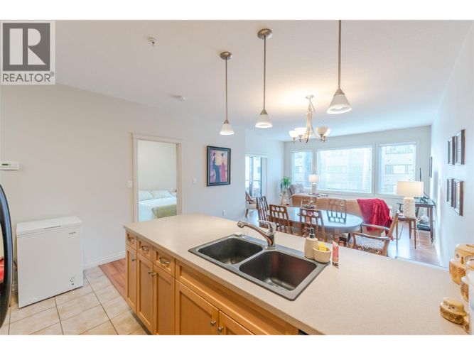 Welcome to The Verana in Penticton! Just 1.5 blocks from the sandy shores of Skaha Beach and moments to nearby shopping, this thoughtfully designed Power Smart development blends efficiency with modern West Coast style. Built with air-source heat pumps and air conditioning, Low-E argon windows, acrylic stucco, and a striking butterfly roofline, the architecture is as functional as it is distinctive. Residents enjoy secured underground parking with storage, high-speed elevators, ample guest parking, and resort-style amenities including a clubhouse, billiards and a fitness centre! The beautifully landscaped grounds feature walking paths, a BBQ area, and even a putting green. Inside this 1 bedroom plus den, 1.5 bath third floor condo, you’ll find 9-foot ceilings and quality finishes throughout, including porcelain tile, laminate flooring, and Corian countertops, designed for both comfort and effortless everyday living. South facing, large windows, covered deck. Pet-friendly with some restrictions: one dog (up to 18” at the shoulder) or one indoor cat permitted. No age restrictions, and rentals allowed with a 6-month minimum. (id:26452)