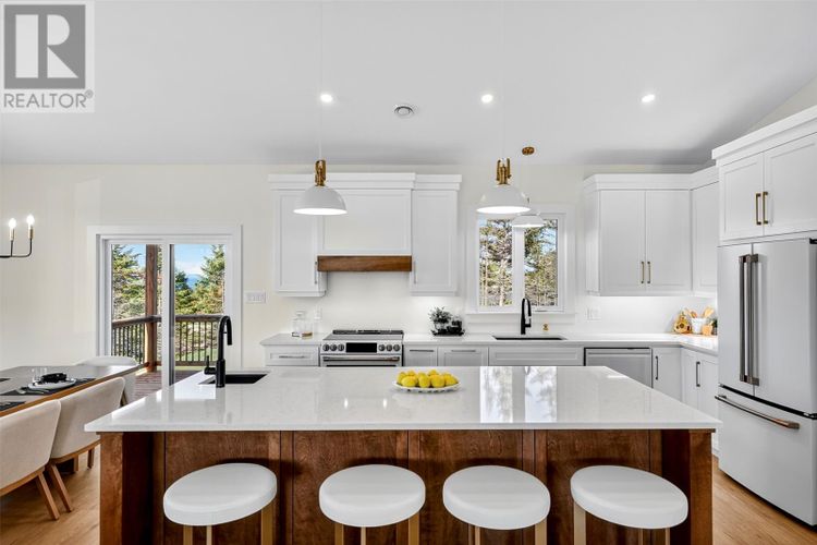 Welcome to a community like no other! Known for its warmer temperatures, friendly neighbours, and close proximity to the Royal Newfoundland Yacht Club, Reddley Place and Luns Place is poised to become one of Conception Bay South’s most desirable enclaves. Nestled in a peaceful cul-de-sac, 12 Reddley Place is a stunning, newly constructed modern bungalow that blends contemporary design with coastal living. Step inside and be greeted by an airy open-concept layout with striking black-trimmed windows, rich flooring, and premium finishes throughout. The main level features a bright living and dining area, a dream kitchen with Hanstone Quartz - Whistller countertops, and a spacious primary suite with a luxurious ensuite and walk-in closet. Two additional bedrooms, a full bath, and convenient main-floor laundry make this level ideal for modern family living. Downstairs, you’ll find a fully developed basement offering endless possibilities, whether you envision a home gym, media space, or guest suite, it’s all here. Energy-efficient heating, a mini split system, and two 200-amp services ensure comfort and convenience, while the attached double garage (with an EV charger) adds to the home’s functionality. Enjoy quiet mornings or evening sunsets on either of the two covered decks, where ocean views remind you just how close you are to the water. If you’re looking for quality craftsmanship, thoughtful design, and a location that offers both serenity and connection, this home truly checks all the boxes. (id:26452)