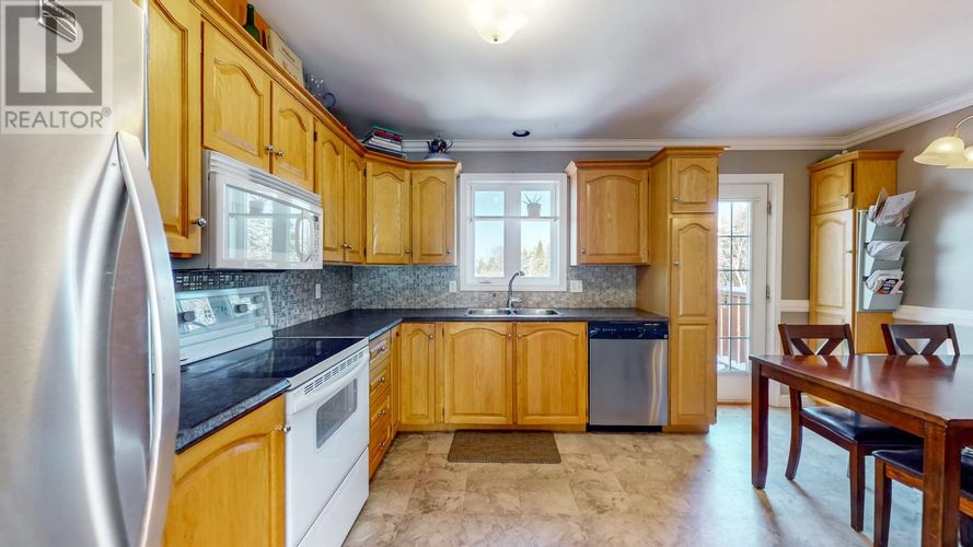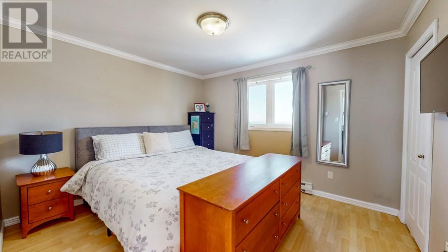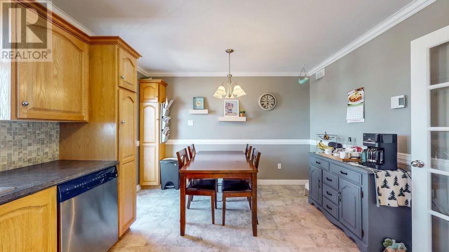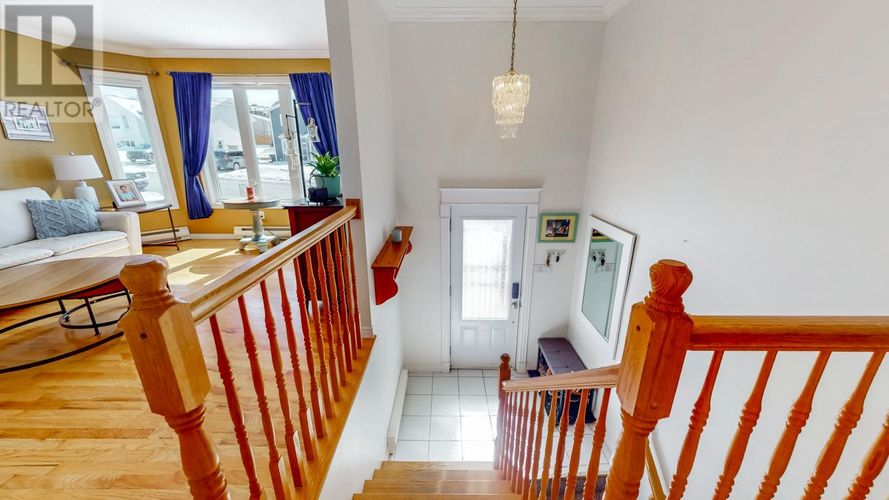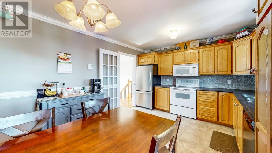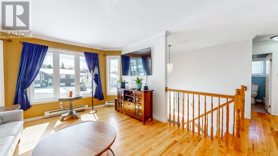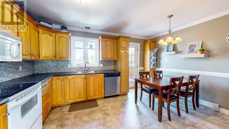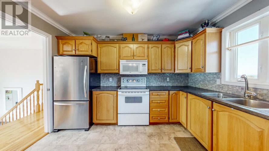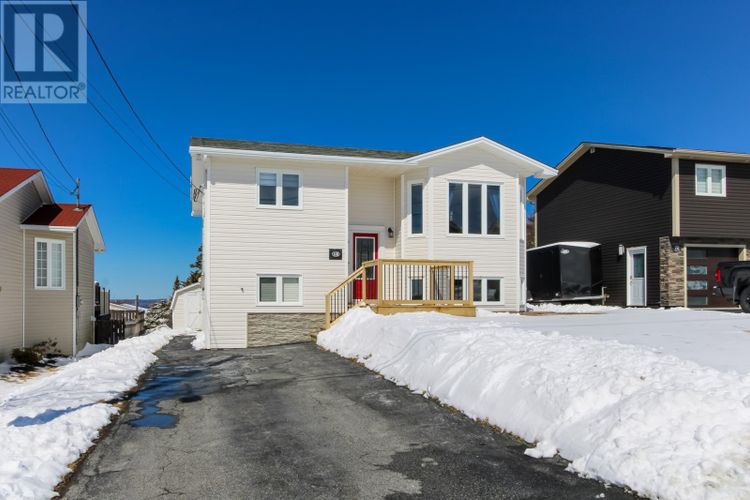 Welcome to beautiful, sunny CBS! Ideally located just two minutes from Peacekeepers Way and close to daycares, recreation, and walking trails, this lovely home offers stunning ocean views over Conception Bay and the most amazing sunsets. The main level features hardwood floors, crown mouldings and a large, bright living room with a beautiful bay window, creating a warm and inviting space. The spacious eat-in kitchen offers loads of cabinet space, a stylish tile backsplash, and plenty of room for entertaining or family meals — all while enjoying gorgeous views. There’s also easy potential to open the kitchen to the living room without sacrificing cabinet space or functionality. The kitchen leads to a two-tier deck and quaint backyard, perfect for relaxing or hosting. On the main level, you’ll find two good size comfortable bedrooms and a fully renovated bathroom. A brand-new mini split installed last summer ensures efficient heating and cooling year-round. There is also a brand-new patio deck out front. The lower level is completely above grade, making it exceptionally bright. It features a large rec room, laundry room, half bath, and ample storage space. With its ground level entry as well as layout and brightness, it offers great potential for an in-law suite or additional living space. Outside, the backyard includes a good-sized shed and plenty of room to enjoy. Situated in a fabulous, family-friendly neighborhood, this home is perfect for a young family, working professionals, or someone looking to downsize. The home inspection is for the purchasers knowledge. As per the sellers directive there will be no conveyance of offers until Sunday April 12th at 5PM and all offers are to be left open until Sunday April 12th at 8PM (id:26452)