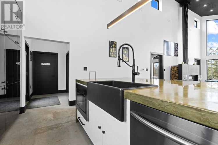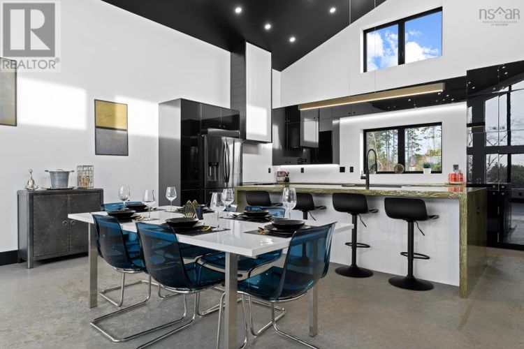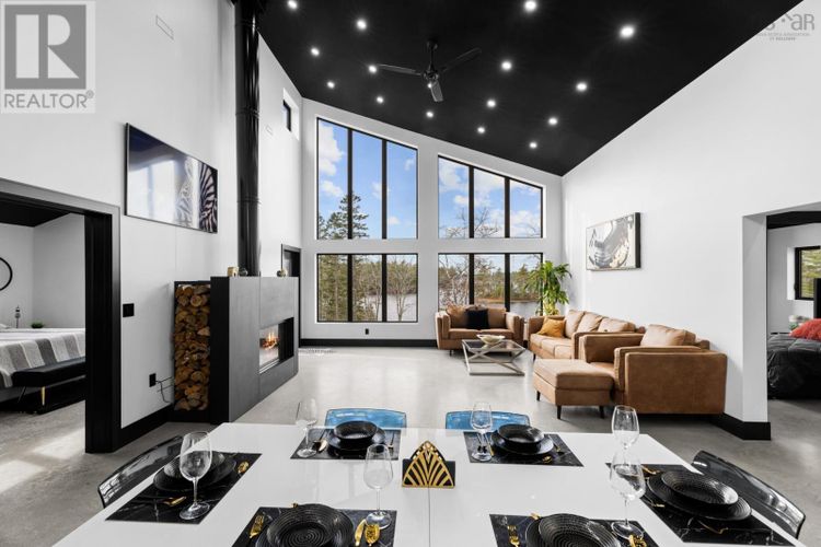 Welcome to Loon Point, a rare lakeside sanctuary where contemporary design meets the timeless beauty of nature. Situated in the prestigious Villages of Long Lake, this impeccably crafted residence offers 85 feet of crystal-clear lake frontage and a lifestyle defined by serenity, sophistication, and connection. Just 35 minutes to Burnside and 40 minutes to Halifax Stanfield International Airport or downtown, Loon Point balances rural tranquillity with exceptional convenience. Whether youre boating from the nearby launch, walking the community trails, or enjoying the annual fishing derby with neighbours, every moment here is effortlessly elevated. The property has been fully cleared and professionally landscaped, with fresh grass in the front, enriched topsoil surrounding the home, and curated plantings that frame the outdoor living space. A leveled, ready-to-build pad offers the perfect location for a future garage providing flexibility without compromise. Inside, the homes design is both refined and forward-thinking. A soaring 20-foot great room with a Stuv Clad-21 fireplace anchors the space, while polished concrete floors and Loggias signature liquid gold countertops set a bold, modern tone. Every detail from full-home soundproofing to smart roof vents and GAF Timberline shingles speaks to a standard of quality rarely found. As part of a bareland condominium, residents enjoy private ownership with access to shared amenities that enrich the lakeside lifestyle. At Loon Point, this isnt just a home. Its where craftsmanship, community, and natural beauty converge. Live where others escape. (id:26452)