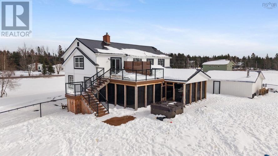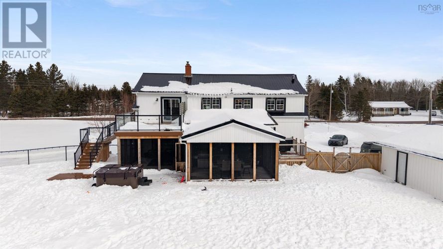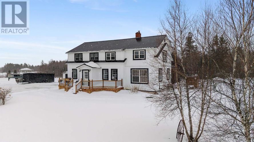 COMPLETELY RENOVATED FIVE BEDROOM, TWO STORY HOME sitting on 3.8 Acres located just outside of Amherst, NS! Located just minutes to the Amherst Golf Course, Trans Canada Highway or 15 minutes to our beautiful beaches. This Century home was moved 15 years ago onto a new foundation/location. The main floor of the home offers open concept living with hardwood or new flooring throughout. Rooms include large entryway, beautiful laundry room, updated kitchen pantry, relaxing common space, new eat in kitchen, separate large dining room, living room with cozy wood insert with and double patio doors to a private deck, outside kitchen space all completely covered, fenced in back yard & back entrance to the two bay de-attached garage! Upstairs youll fine the large master bedroom suite on one side of the home with large sitting room, en suite bath. Also two guest bedrooms. The lower level of this home provides buyers with a large family room, third full bathroom, two additional guest rooms, storage and utility space. The property offers ducted furnace, wood stove insert, beautifully landscaped yard & absolute lovely area! Whether you are dreaming of a full-time family home or just an all in one exceptional country property with elegance, and convenience of minutes from down town Amherst, the Amherst Golf Course or TCH...this one could be for you. (id:26452)