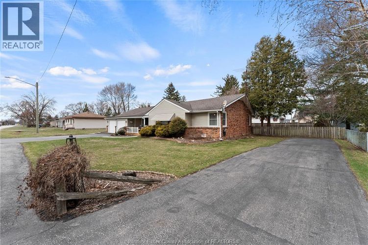 Don’t miss this charming ranch home in the heart of LaSalle situated on a rare 120 x 129 ft double lot! The property offers 3 bedrooms and 1.5 baths, spacious kitchen with center island, large dining area, and inviting living room with barn board feature wall and pebble stone floor accents. Updated 4-pc bath (approx. 3 yrs). Enclosed sunroom with wood-burning fireplace and bar creates the perfect space for entertaining. Second sunroom great for greenhouse use or relaxing with your morning coffee. Exterior features sundeck with gazebo overlooking the fully fenced massive yard. Beautifully landscaped grounds with trees, garden beds and storage shed. Heated 2-car drywalled garage, second driveway leading to a potential second small home (ADU). Conveniently located near schools, shopping and the scenic LaSalle Landing Waterfront. (id:26452)