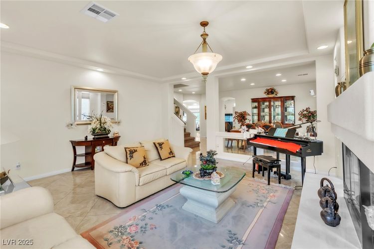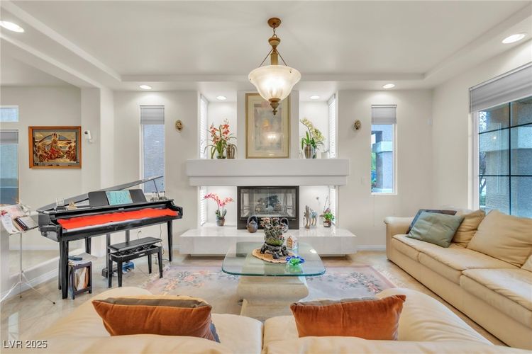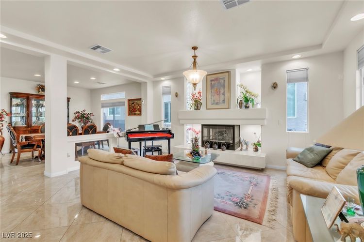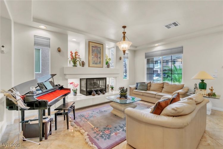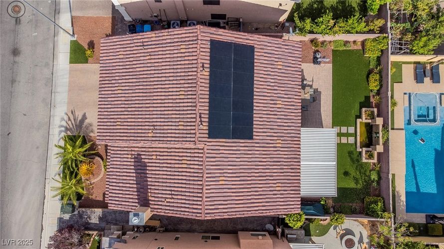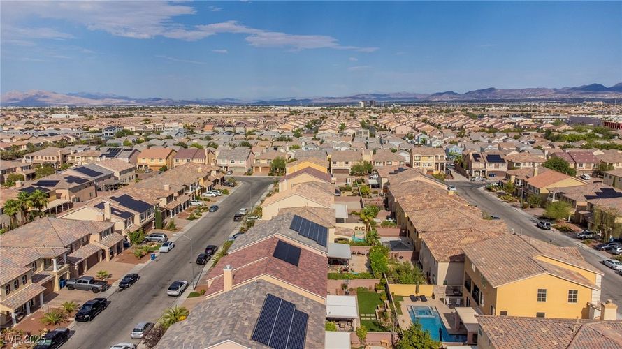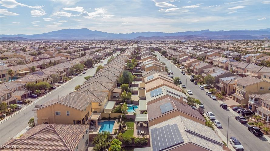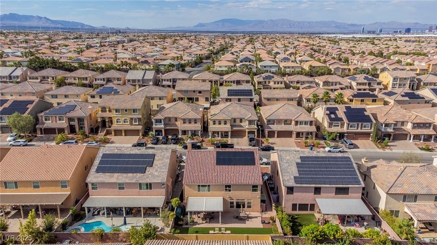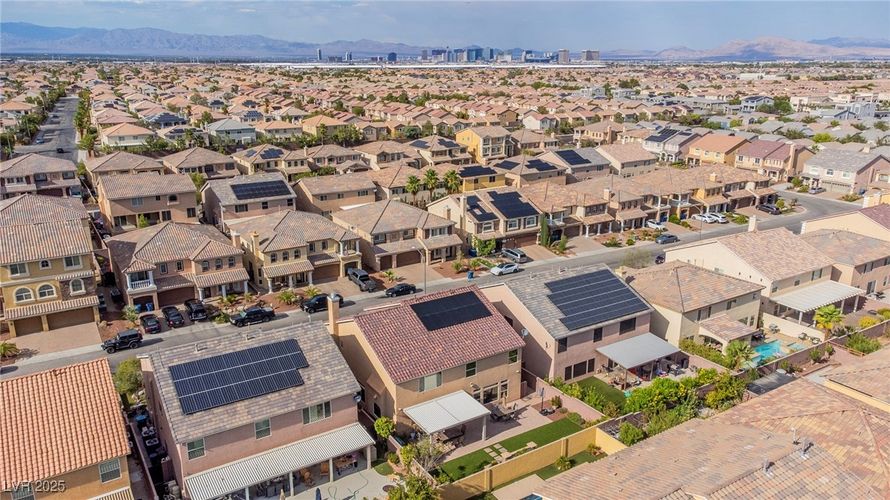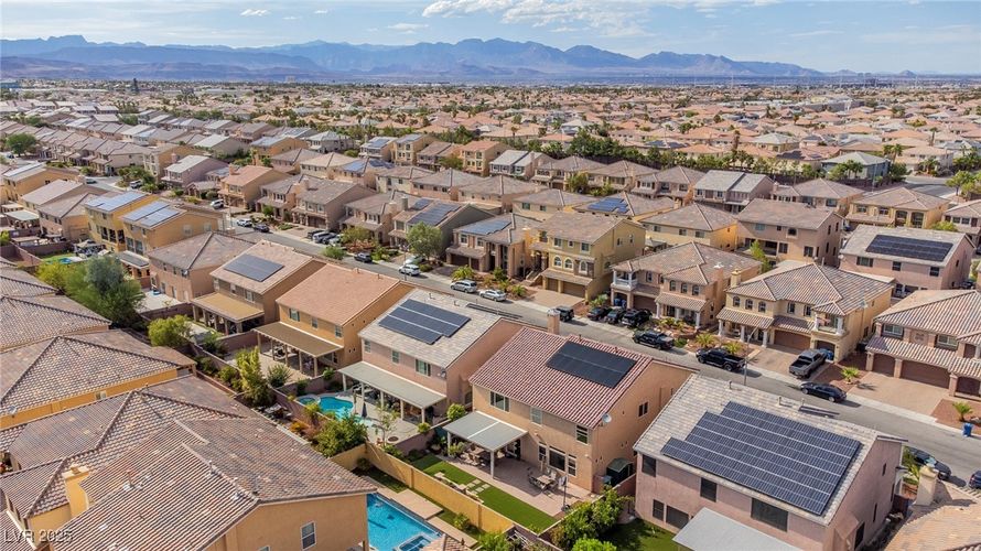 GREAT SOUTHWEST LOCATION & SOLAR POWERED HOUSE (FULLY PAID)!!!.Spacious living area and Lot with relax living space. Enter to an Upgraded Front Door features thru Living /Dining Room with Fireplace with porcelain flooring.Smart Front Door Lock Entry & Garage Door. Continue to rear of house where you find open space with Family Room and Kitchen. Kitchen Upgraded cabinets.Custom Backsplash and accents. Stainless Steel appliances . One Bedroom located downstairs with Full bath across the hall. Separate Laundry room with cabinets and wash basin.Upstairs enormous loft with prewired cable, Cat5 and speaker connections. Primary BR is very spacious with two walk-in closets.Walk-in Shower and separate full size tub in Master BR, 3 guest room upstairs, with 2 full bath. One way Tinted Window Glass all over. Water Softener with conditioner supply all house. High End Epoxy Primed GarageTankless Water Heater. Backyard Landscape with Water Falls, Covered Paver patio . MUST SEE PROPERTY IN VEGAS!