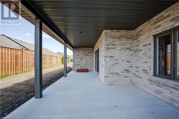 Features include gorgeous hardwood stairs, 9' ceilings on main floor, custom designer kitchen cabinetry including upgraded sink and taps with a beautiful quartz countertop. Dining area overlooks great room with electric fireplace as well as walk out to a huge 300+ sqft covered porch. The spacious primary suite has a walk in closet and glass/tile shower in the ensuite. Other upgrades include pot lighting, modern doors and trim, all plumbing fixtures including toilets, carpet free main floor with high quality hard surface flooring. Did I mention this home is well suited for multi generational living with in-law suite potential. The fully finished basement includes a rec room, 2 bedrooms and a 3 pc bath. Enjoy the small town living feel that friendly Elmira has to offer with beautiful parks, trails, shopping and amenities all while being only 10 minutes from all that Waterloo and Kitchener have to offer. Expect to be impressed (id:26452)
