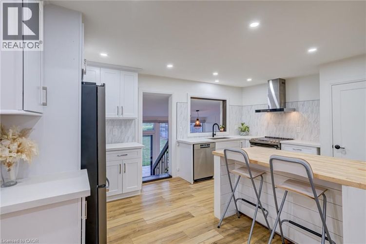 Discover this fully renovated 5-bedroom, 3-bathroom home with 2-car garage, set on a private .34-acre lot just outside of town. A new flagstone walkway with natural stone steps leads you to the inviting front entrance. Step inside to find a modern layout with versatile living spaces, including a workout room, spacious dining room, and bright bedrooms. The newly landscaped backyard features a stunning interlock patio and full fencing, perfect for entertaining, pets, or family play. Unwind while watching breathtaking sunsets over the back field from the dining room, or greet the day with sunrise views from the front porch. Offering unmatched privacy yet steps to the Chippewa Rail Trail, this home blends the convenience of location with the peace of country living. A rare opportunity to enjoy both modern updates and serene surroundings. (id:26452)