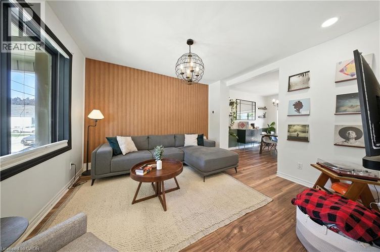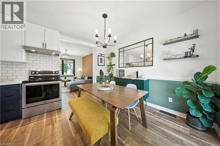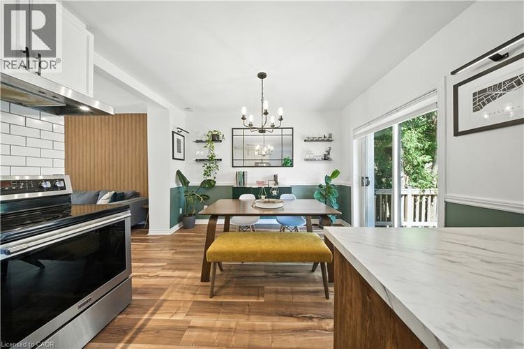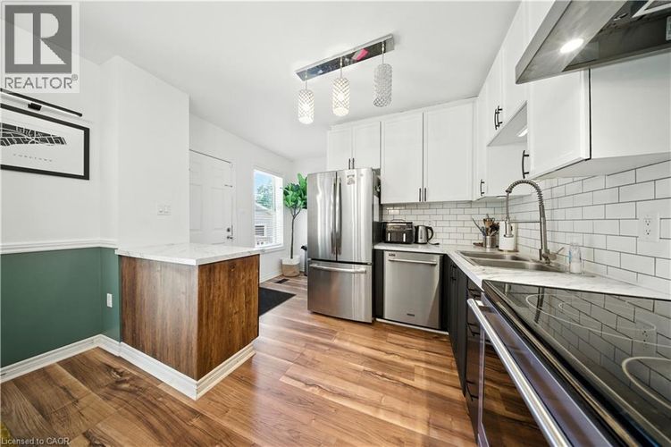 A hole-in-one backyard! Welcome to this beautifully updated 1.5-storey detached home featuring 2 bedrooms and 2 renovated bathrooms. The sunlit living room flows seamlessly into a modern open-concept kitchen, complete with stainless steel appliances and a sleek new backsplash (2023). Step outside through one of two walkouts to the backyard deck - an ideal space for entertaining, relaxing, or enjoying your very own private mini putt. Recent updates include water-resistant laminate flooring and fresh paint throughout (2023). New furnace (2025). This property also offers parking for three vehicles plus a garage. The location is unbeatable - just steps from Juravinski Hospital, Concession Street shops, and local favourites like Rosie’s Burger, Heal Bar, and a variety of great restaurants and cafés. Come see why this property is more than just a home—it’s a lifestyle. (id:26452)