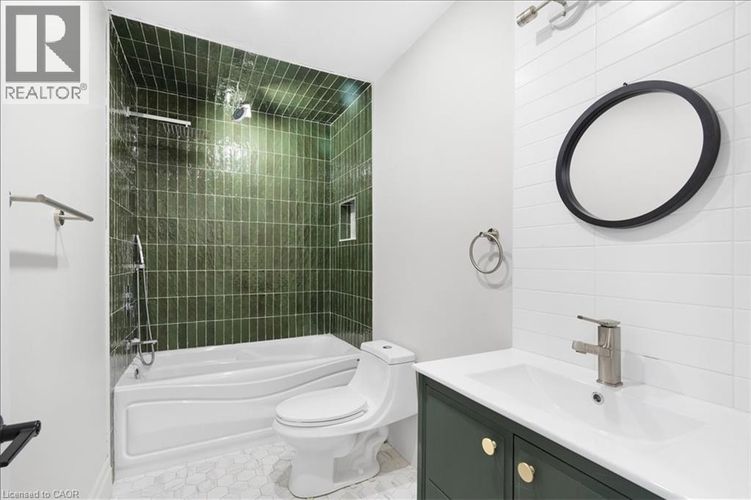 Available November 1! Don't miss this fabulous, conveniently located bungalow with parking and private backyard including lovely wooden deck. Bright, clean, and updated eat in kitchen, large front living room, cool and modern 4 piece bath, and two bedrooms with closets. Convenient in unit laundry is a bonus! Super hip location steps to Concession St., Sam Lawrence Park, and conveniently close to public transit, the Jolley Cut, the Linc., and more. Water is $25/month per person and heat is split 50/50 with basement tenant. Basement is tenanted and is not included. Square footage and room sizes approximate. (id:26452)