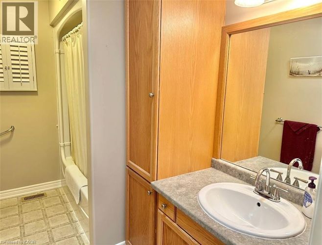 Welcome to 31 Geoffery Drive in the popular lakeside community of Port Dover. A meticulously maintained one-owner home with many upgrades in a subdivision that is convenient to shopping, parks and other local amenities. Gleaming hardwood floors flow throughout the main living area. Kitchen/dining area has a large island and a pantry for extra storage. Patio doors lead to the large deck. The home originally had 3 bedrooms on the main level, but the 3rd bedroom has been converted to a den/office. Primary bedroom has a huge walk-in closet. A laundry room with a garage entrance, and a 4-piece bathroom finishes off the main level. There are two entrances to the finished basement. One set of stairs is off the main living area with a second set of stairs going to the basement from the 1 1/2 car garage. This would easily allow for a conversion to an in-law suite. The basement level has a family room, 2 additional bedrooms and a 3-piece bathroom. The roof was shingled in 2022, and the natural gas furnace was replaced 2022. The large, upgraded lot is totally fenced with mature trees and a deck big enough for entertaining friends and/or family. An attractive shed for extra outside storage sits pretty at the back of the yard. A must see ... comfort and style all in one beautiful package at an affordable price. (id:26452)