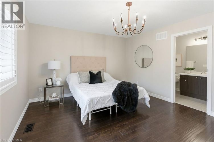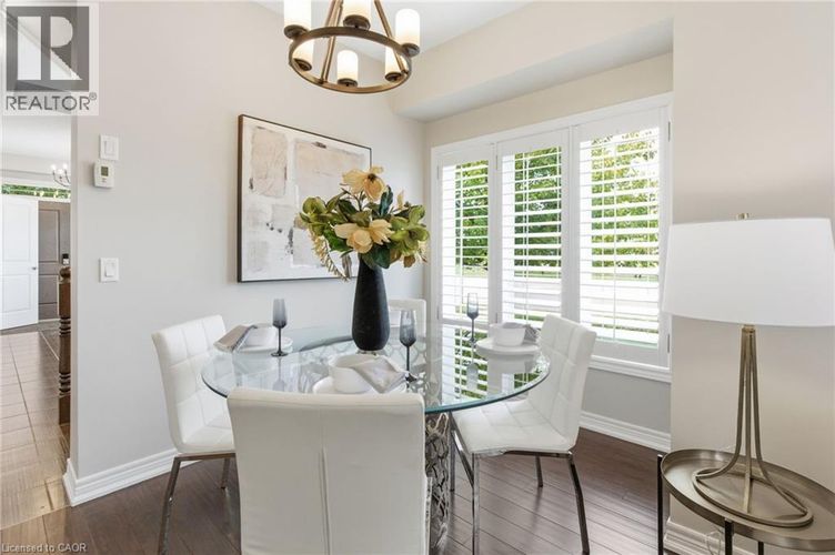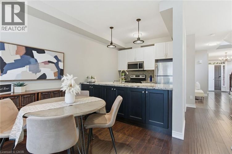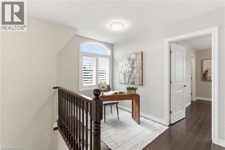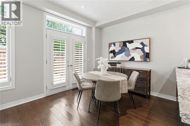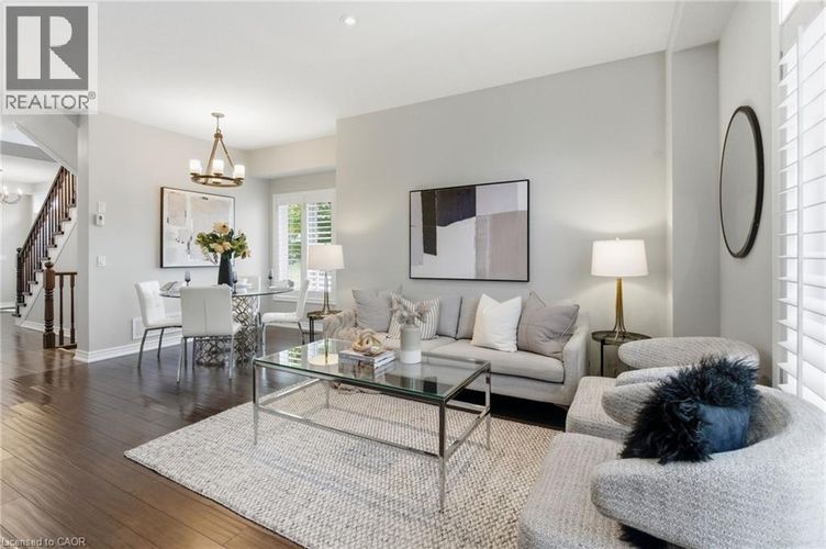 Beautiful End Unit Freehold Townhome in Prime Burlington Location! Welcome to this spacious, sun-filled 3 bedroom, 2.5 bath end unit townhome nestled in one of Burlington’s most sought-after neighbourhoods. Designed for modern living, this home is filled with natural light from an abundance of windows & features recent updates throughout, including easy-to-care-for wide plank flooring, a new solid wood staircase, updated light fixtures, California shutters & freshly painted. The open-concept main level with 9ft ceilings offers a bright & inviting living & dining area, a modern kitchen with granite countertops, island with added storage & breakfast nook with sliding doors leading to the backyard. A convenient 2pc bath & inside entry from the garage complete this level. Upstairs, the solid wood staircase leads to a spacious primary suite featuring two walk-in closets & private 3pc ensuite. Two additional generous bedrooms, a cozy loft or home office/den & 4pc bath complete the second level. The unfinished basement offers great potential for additional living space & includes laundry & rough-in for a future bathroom. Enjoy the fully fenced, low-maintenance backyard complete with a large deck perfect for relaxing or entertaining. Ideally located close to all amenities, steps to shopping, dining, schools, parks, and transit, with easy access to Appleby GO Station & highway access—this better than new home offers the perfect blend of comfort, style & convenience. (id:26452)