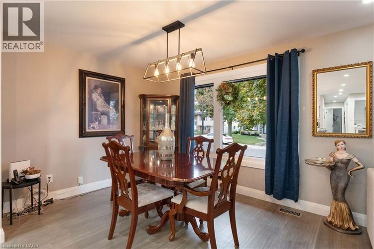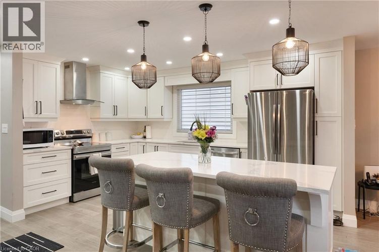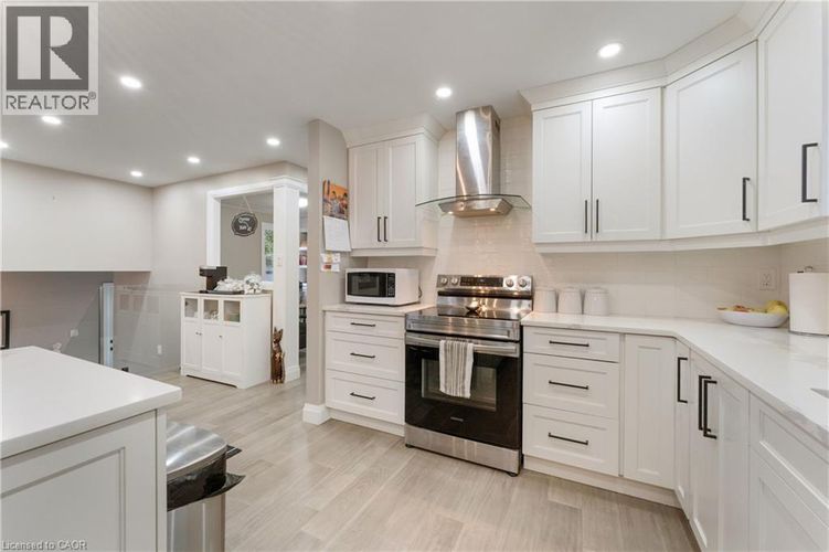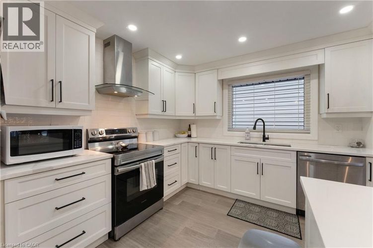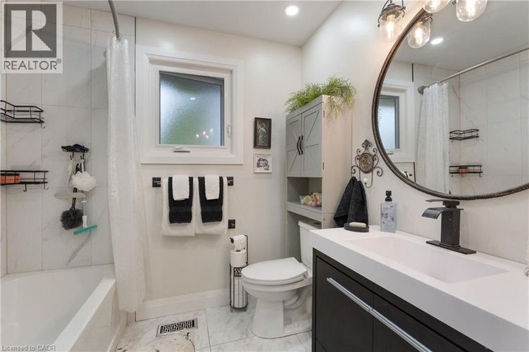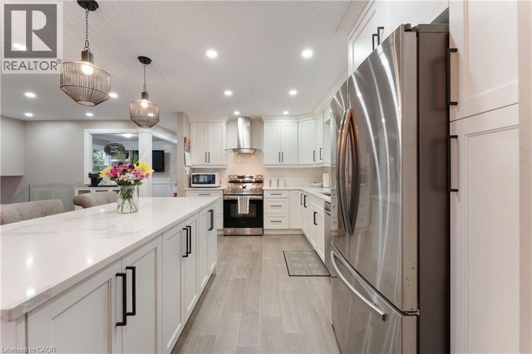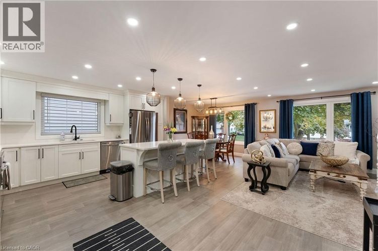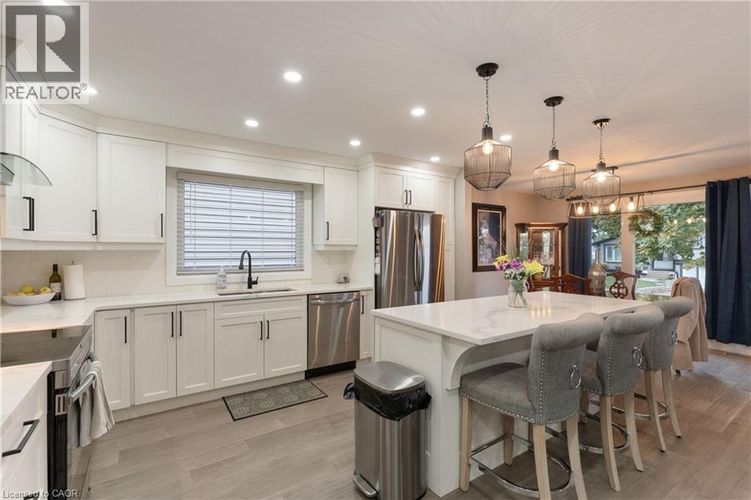 Bright, well-appointed raised-ranch bungalow in the heart of the Gershome neighbourhood, offering an exceptional turnkey living opportunity. The home features a fully self-contained in-law suite with its own walk-out entrance, perfect for multi-generational living. Both levels showcase custom kitchens with quartz counters, stainless appliances, ample storage and stylish finishes. The main level greets you with engineered hardwood, pot lights, crisp trim, and a seamless flow from living to dining to kitchen. The main floor den could easily revert back to a third bedroom. Two designer bathrooms (one on each level) feature custom vanities and modern fixtures. In the lower level, the in-law space includes its own laundry and living areas, giving total autonomy to residents. Many systems and finishes have been renewed: high-efficiency furnace, AC, windows, exterior roof, fascia, eavestrough, insulated garage door, new front entry door, updated doors/trim/hardware throughout, and repointed/epoxy coated foundation steps. The yard is a private oasis with a steel-roofed gazebo, custom luxury playhouse, inground sprinkler, exposed-aggregate patio, gas BBQ hookup, and new fencing. Situated in Gershome, you’ll enjoy proximity to schools, parks, transit, and quick access to the Red Hill Valley Parkway. Summers can be spent golfing at nearby Glendale Golf & Country Club, or hiking the trails and escarpment. This home is truly move-in ready and versatile. (id:26452)