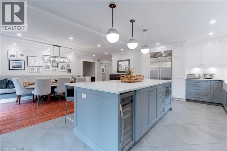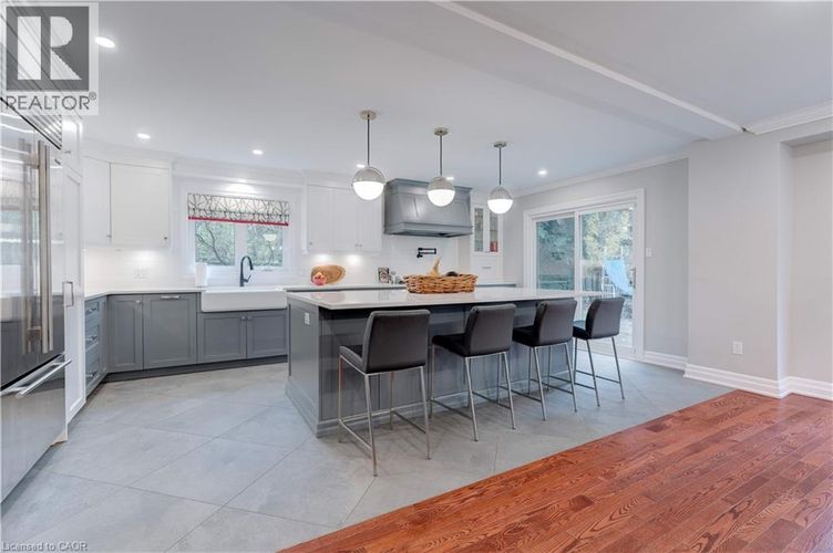 Showcasing inviting, comfortable family living, this executive Mattamy (Oxford model)home built in 1989 has been transformed into a sophisticated sanctuary. With 6 bedrooms & 4 full bathrooms upstairs including 2 spacious primary bedrooms with spa-inspired ensuites, this home balances style & function. Solid hardwood flows throughout complemented by smooth ceilings, designer trim, baseboards & contemporary door hardware, creating a cohesive, high-end finish. A major renovation in 2018 (kitchen, laundry, powder room) provides a fresh, updated living space perfect for entertaining. The heart of the home is the stunning chef-inspired kitchen where design meets practicality. A massive 13' banquette invites family & friends to gather while the oversized island with Cambria quartz countertops anchors the space. High-end appliances-Sub-Zero fridge, 36 AGA dual fuel range, Miele dishwasher, wine fridge plus pull-out pantry & spice cabinets make cooking effortless. Sliding doors & large bay window flood the space with light. A cozy family room with wood-burning fireplace & wainscoting offers a warm retreat while a separate dining room & main-floor office/den provide versatile living spaces. Upstairs all 6 bedrooms feature hardwood & custom closet organizers. The 5-piece primary ensuite dazzles with heated floors, a spa-style shower with rain head & body jets plus soaker tub. The unfinished basement provides a blank canvas for customization-home gym, media room,etc. Set on an oversized corner lot measuring 72' across the back, the outdoor space is family's dream-saltwater pool with waterfall & slide, stone patio & BBQ area, unique 2-storey playhouse & cabana, plus a grass area perfect for children & pets. Located in the highly sought-after Glen Abbey community with top-ranked schools, parks, trails, community center, shopping, GO transit & highways nearby, this residence offers the ultimate blend of style, space & location—a rare Oakville treasure designed for today's family (id:26452)