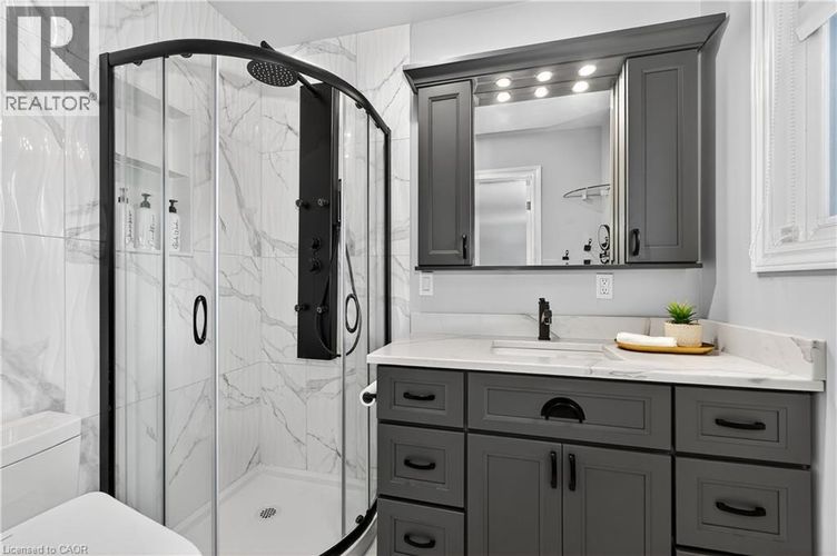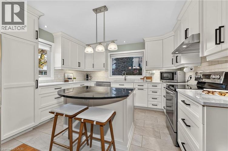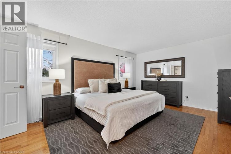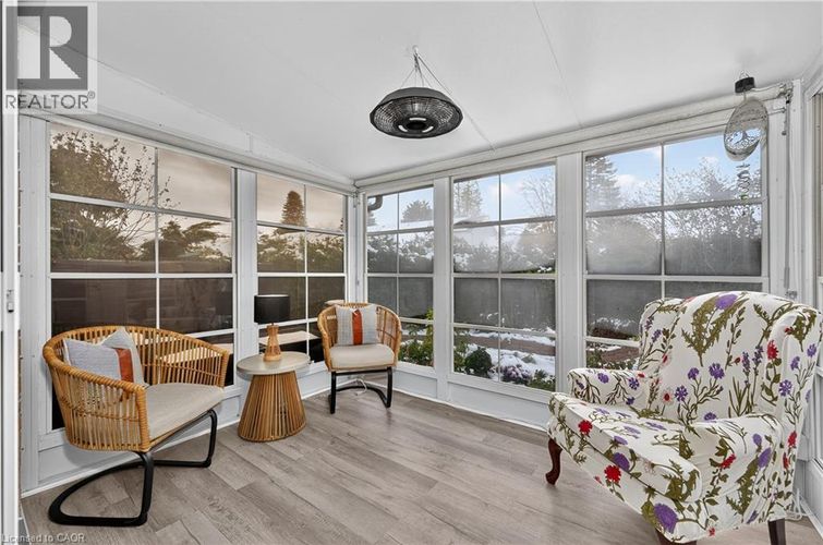 STUNNING OVER-1900 SQ FT BUNGALOFT BACKING ONTO PEACEFUL GREENSPACE IN THE HEART OF NIAGARA’S WINE COUNTRY Enjoy relaxed, elevated living in this beautifully updated 2+2 bedroom bungaloft set in an extremely quiet area with no rear neighbours. Surrounded by award-winning wineries, great restaurants, boutique shops, and the scenic trails of Balls Falls Conservation Area, this home places the best of Niagara right around the corner. Perfect for empty nesters or retirees, you can also access the Heritage Village community centre for a small annual fee, giving you an indoor heated saltwater pool, fitness facilities, games rooms, and vibrant social spaces that enrich everyday life. Thoughtfully updated throughout, the home features renewed windows and doors, custom shades, renovated baths, a refreshed kitchen, upgraded mechanicals, full interior painting, enhanced sunroom finishes, concrete patio work, and a massive retractable awning for outdoor comfort. The main level blends warmth and function with soaring ceilings, hardwood floors, a gas fireplace, and a welcoming open flow. The kitchen includes stone countertops and a large island, while the bright second bedroom connects to the sunroom—ideal for quiet mornings. The primary suite includes a walk-in closet and private 3-piece ensuite. The spacious loft adds meaningful flexibility with room for a second living area, reading, games, or hobbies, plus a custom live-edge desk for a beautiful workspace. The fully finished lower level includes two generous bedrooms, a full bathroom, and a large rec room—great for guests, hobbies, or added living space. Outside, unwind in your private backyard oasis with lush gardens, a large patio, fire pit area, pergola-covered hot tub, and a massive retractable awning, all set against peaceful green space. If you’re seeking updated main-floor living, quiet surroundings, and the full Niagara lifestyle, this home delivers it all. (id:26452)