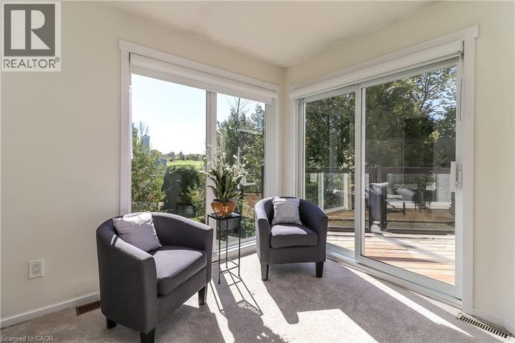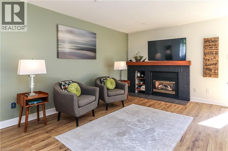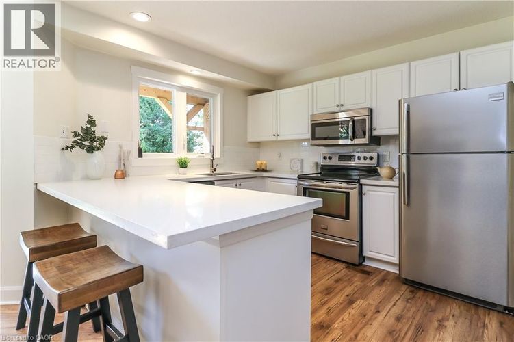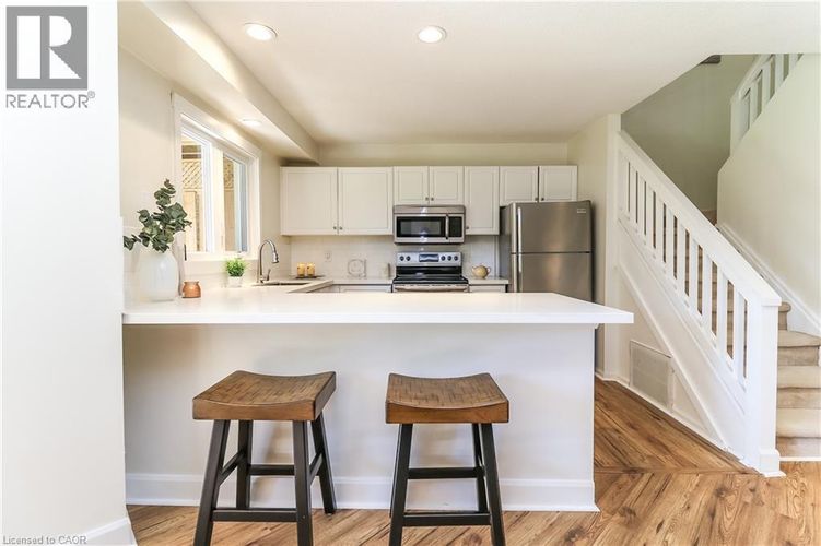 LOCATION! LOCATION! LOCATION! Beautiful corner townhouse backing directly onto Cranberry Golf Course with stunning mountain views from a spacious upper balcony. Located in one of Collingwood’s most desirable communities, this home offers the perfect blend of comfort, style, and year-round lifestyle. The main floor features a bright open-concept living and dining area with a custom gas fireplace that creates a warm atmosphere while helping keep energy costs low. The renovated kitchen impresses with an oversized quartz island, stylish backsplash, generous cabinetry, and stainless steel appliances. A walkout leads to a private patio with BBQ area surrounded by mature trees—perfect for relaxing or entertaining. Upstairs, the primary suite offers abundant natural light, a walk-in closet, elegant en-suite, and direct balcony access overlooking the 18th hole. The second bedroom also shares balcony access. Close to trails, downtown Collingwood, Blue Mountain, Cranberry Mews shops, recreation centre, and public transit right on Dawson Drive. (id:26452)