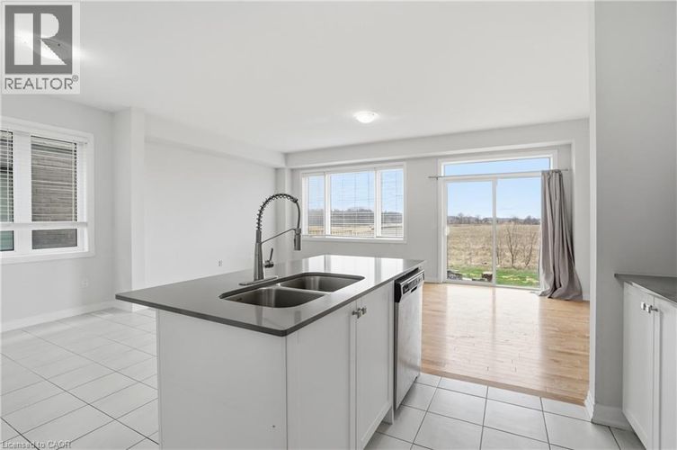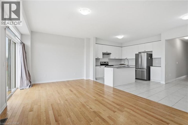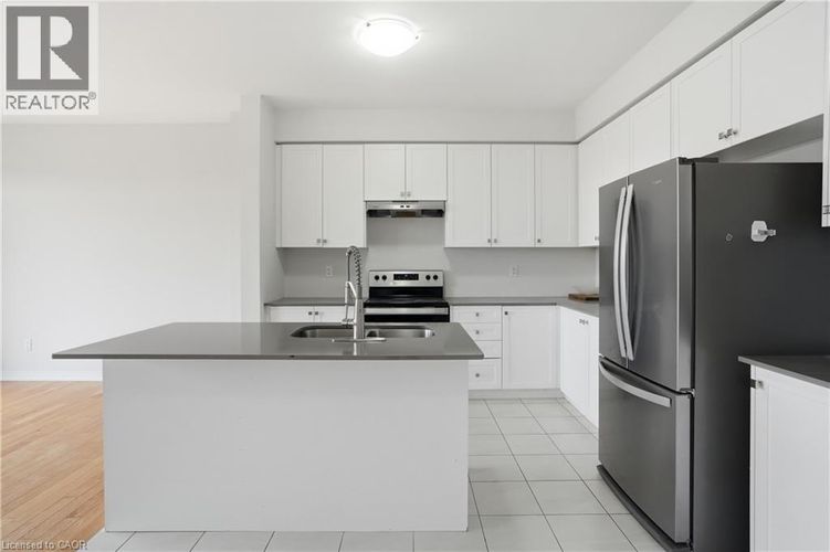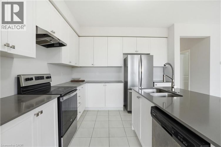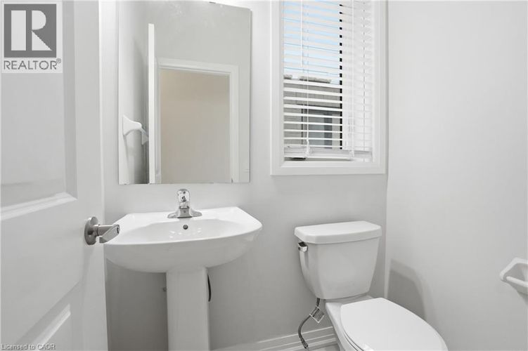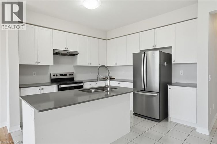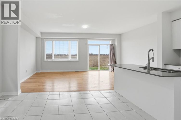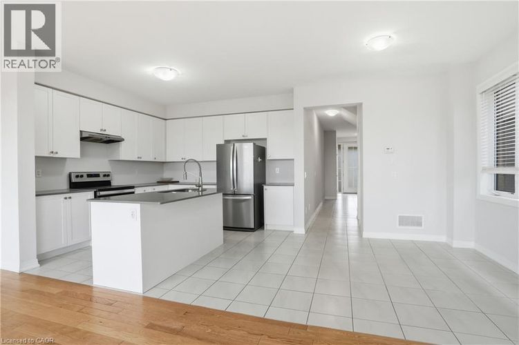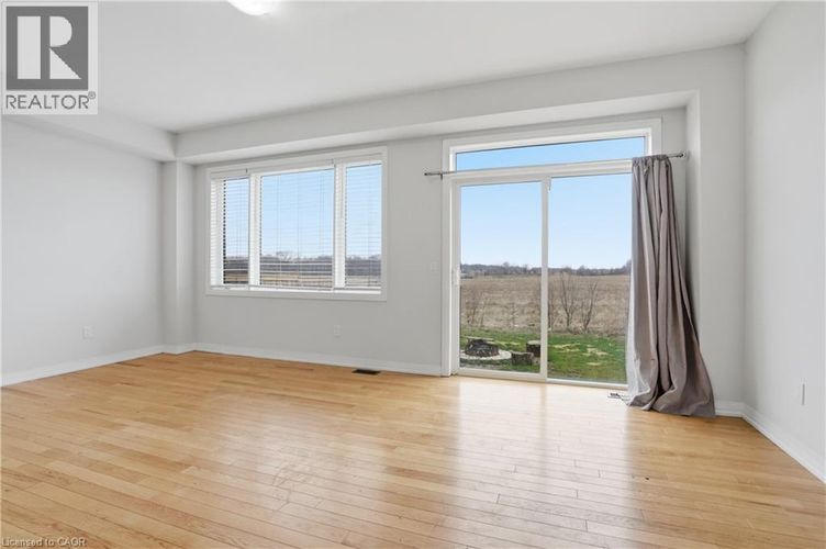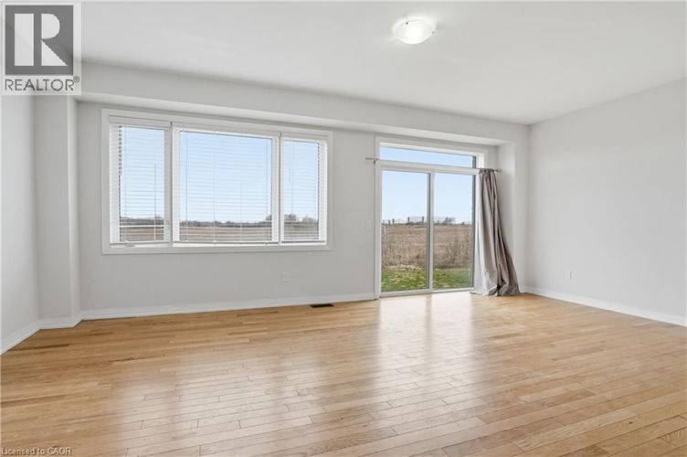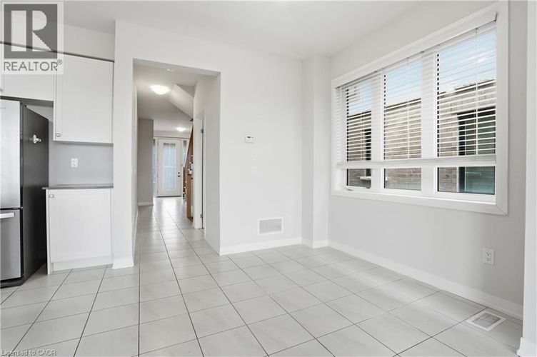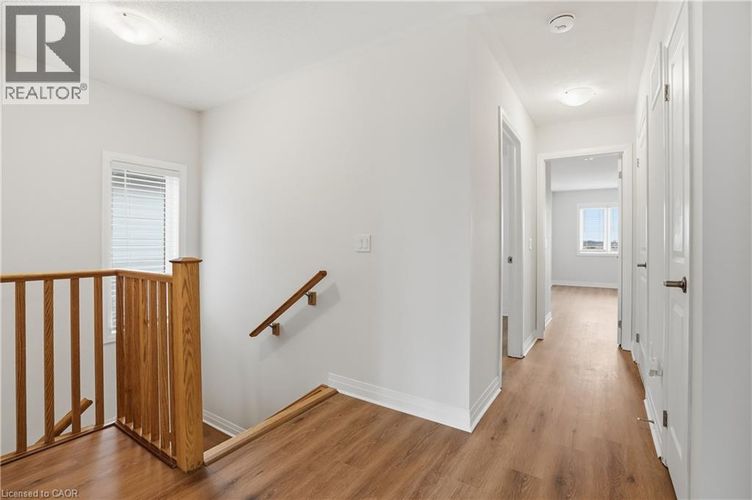 Welcome to this newer, four-year-old two-storey end-unit townhome located in Mount Hope. Enjoy added privacy with no rear neighbours and the benefits of an end unit. The main floor features a bright, modern kitchen with white cabinetry, quartz countertops, and stainless steel appliances, flowing into a spacious living room with hardwood flooring. Upstairs offers four generous bedrooms and three bathrooms, providing plenty of space for family living. The unfinished basement provides ample storage. February 20th possession available. Tenant to pay all utilities. Tenant responsible for lawn maintenance and snow removal. (id:26452)