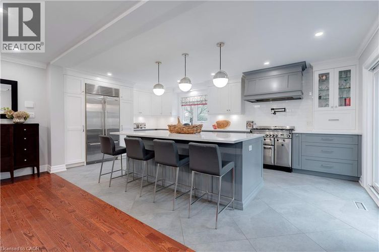 Showcasing inviting, comfortable family living, this executive Mattamy (Oxford model)home built in 1989 has been transformed into a sophisticated sanctuary. With 6 bedrooms & 4 full bathrooms upstairs including 2 spacious primary bedrooms with spa-inspired ensuites, this home balances style & function. Solid hardwood flows throughout complemented by smooth ceilings, designer trim, baseboards & contemporary door hardware, creating a cohesive, high-end finish. A major renovation in 2018 (kitchen, laundry, powder room) provides a fresh, updated living space perfect for entertaining. The heart of the home is the stunning chef-inspired kitchen where design meets practicality. A massive 13' banquette invites family & friends to gather while the oversized island with Cambria quartz countertops anchors the space. High-end appliances-Sub-Zero fridge, 36 AGA dual fuel range, Miele dishwasher, wine fridge plus pull-out pantry & spice cabinets make cooking effortless. Sliding doors & large bay window flood the space with light. A cozy family room with wood-burning fireplace & wainscoting offers a warm retreat while a separate dining room & main-floor office/den provide versatile living spaces. Upstairs all 6 bedrooms feature hardwood & custom closet organizers. The 5-piece primary ensuite dazzles with heated floors, a spa-style shower with rain head & body jets plus soaker tub. The unfinished basement provides a blank canvas for customization-home gym, media room,etc. Set on an oversized corner lot measuring 72' across the back, the outdoor space is family's dream-saltwater pool with waterfall & slide, stone patio & BBQ area, unique 2-storey playhouse & cabana, plus a grass area perfect for children & pets. Located in the highly sought-after Glen Abbey community with top-ranked schools, parks, trails, community center, shopping, GO transit & highways nearby, this residence offers the ultimate blend of style, space & location—a rare Oakville treasure designed for today's family (id:26452)
