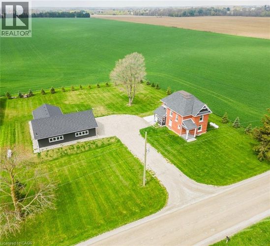 Fall in love with this classic red brick farmhouse that truly has it all! Just 2 minutes outside the peaceful village of Thorndale and only 10 minutes from London, it's the ideal spot to embrace your dream of country living. Nestled on over 1 acre, there's plenty of outdoor space to enjoy, yet it's still easy to maintain. Extensive renovations have brought modern comforts while preserving the timeless charm of this century home. The main floor offers a seamless flow between rooms, with natural light filling the space and creating a welcoming atmosphere. The mudroom has plenty of storage for shoes and coats, plus a space designed with your furry friends in mind. The kitchen boasts generous counter and cupboard space, with an island and warm wood cabinetry, complemented by a light countertop and crisp white backsplash. The walk-in pantry adds extra storage for small appliances, dry goods, cleaning supplies, and more, keeping the kitchen tidy and organized. The living room opens into the dining room, with a convenient powder room and main floor laundry nearby. A cozy den, just off the front door, offers a versatile space with many possibilities. The primary bedroom contains a private ensuite with double sinks and a walk-in shower. Three additional spacious bedrooms provide room for your family, and the 4 piece bathroom includes a shower/tub combo and built-in shelving for linens. The fully insulated 2000 sq ft garage/workshop is a standout feature, with radiant in-floor heating - separately zoned between the shop and gym, cathedral ceilings with 9-foot walls, a generator plug with an automatic switchboard for a standby system, CAT6 wiring, plumbing roughed in for a septic tank and bathroom, and conduit for water to be run from the well in the house. Imagine the joy of sitting outdoors on the concrete patio in warm summer months, surrounded by peaceful fields, listening to the crickets hum - make this dream your new reality! (id:26452)