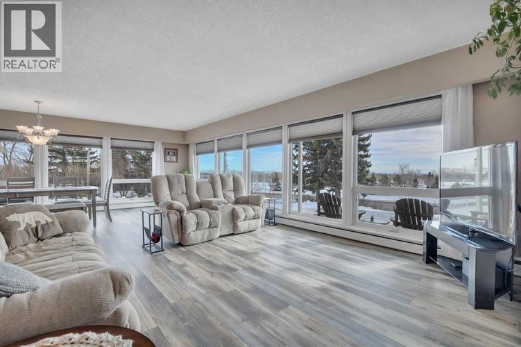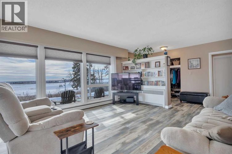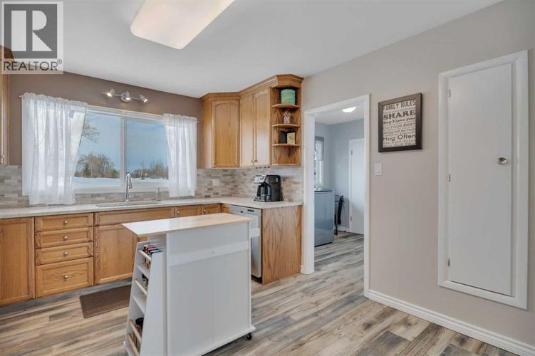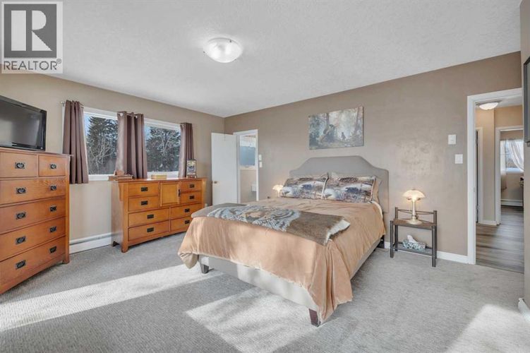This place is a hole-in-one — perfectly teed up on top of the hill right beside the golf course. Sitting on 1.73 acres inside city limits, this fully renovated property is packed with upgrades that matter. Newer roof, newer electrical panel, full septic replacement (2023), zoned HVAC with independent climate control on each level, on-demand hot water, and added attic insulation. Move in knowing the big-ticket items are done. The main floor features a king-sized primary retreat with an upgraded ensuite, floor-to-ceiling vinyl windows that flood every room with natural light, new vinyl plank flooring and carpet throughout, custom blinds, and fresh paint top to bottom. The kitchen is clean and functional — ceiling-height cabinetry, quartz countertops, newer appliances including an induction range, and a large window over the sink framed by trees. Built-in shelving in the living room adds character and storage. Main floor laundry and a spacious mudroom with its own two-piece bath round out the everyday essentials. The lower level is fully self-contained. A large family room anchored by a cozy wood stove, two oversized bedrooms with above-grade windows, a full bathroom, a second living area, and cold storage. The full kitchen downstairs includes cabinetry for days, a stove, fridge, dishwasher, and pantry, with roughed-in laundry hookups ready to go. A lockable door between levels allows each floor to function independently — ideal for multi-generational living, extended family, or anyone who values flexibility and separation. Outside matches inside. A wraparound deck catches southern and eastern sun, while the fully fenced yard is lined with lilacs, raspberry bushes, and Saskatoon berries. Two gated access points, RV parking, an extended driveway, a heated double detached garage, and a storage shed give you room for every vehicle, project, and hobby. No one in front, no one behind — just open sky, golf course views, and your own patch of paradise. You're across from the ball diamonds, steps from a seasonal farmers' market, and two minutes to the clubhouse. Red Deer is under 20 minutes; Edmonton International about an hour. Space, privacy, updates, and a layout that works however you need it to. Don't wait — book your showing before someone else sinks it. (id:26452)