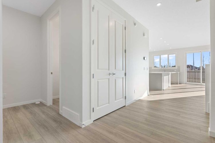 In the heart of West Grove, where family living meets elevated design, this 5 bedroom, 3.5 bath home delivers the perfect balance of warmth, versatility, and modern style. Every inch of its 2857 sq. ft. of developed living space has been thoughtfully designed for real life - where entertaining, relaxing, and everyday moments unfold effortlessly. Step inside and feel the natural flow of the open-concept main floor - anchored by floor-to-ceiling glass sliding doors that bathe the space in light and extend seamlessly to a large backyard deck, creating a beautiful connection between indoors and out. The great room’s electric fireplace adds a cozy centerpiece for evenings in, while the kitchen shines with two-toned cabinetry, white quartz countertops, and pot lighting that elevates the ambiance. Choose your own appliances at the builder’s supplier with an allowance of $8954. A large pantry and mudroom add practical function for busy mornings and grocery hauls, and a nearby flex room offers the ideal space for a home office, playroom, or creative studio. Upstairs, the home’s sense of spaciousness continues. The primary suite is a peaceful retreat with a spa-inspired ensuite featuring a soaker tub, glass shower, double vanity, and private water closet - plus a generous walk-in closet and easy access to the upper-level laundry room. A central bonus room invites family movie nights or a cozy reading nook, while three additional bedrooms and a dual-sink main bath ensure everyone has space and privacy. Downstairs, a fully developed basement with a side entrance adds even more flexibility. The expansive recreation room can transform into a home gym, games area, or theatre, while the fifth bedroom and full bathroom make this level ideal for guests, teens, or extended family. With its bright open floor plan, stylish finishes, and thoughtful family-centered design, this West Grove gem delivers more than just square footage - it delivers lifestyle. Living in West Grove means access to one of Calgary’s most coveted west-side communities - where tree-lined walking paths, nearby playgrounds, and top-rated schools create an environment families truly love. Enjoy proximity to West 85th’s boutique shops and restaurants, Westside Recreation Centre, and LRT access for an easy downtown commute. This is a home where you can grow, gather, and truly live. Come see how this space feels when it’s yours. Schedule your private showing today. (id:26452)