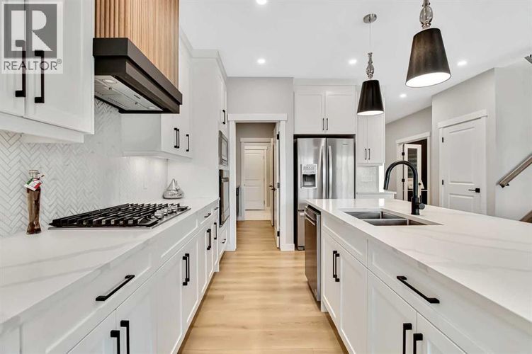 Pond views, sunset evenings and thoughtfully designed spaces for everyday living - welcome to one of Wedderburn’s most desirable offerings. Backing directly onto the pond and pathway system, this exceptional home delivers a rare blend of privacy and connection to nature. Walking distance to schools, park, dog park and pump track, this location offers an ideal balance of outdoor living and everyday convenience. The professionally landscaped backyard is designed for unforgettable gatherings, featuring a custom patio with fire pit, pergola lounge area and serene water views that create a true retreat. The rear deck with BBQ gas line extends the entertaining space, making it effortless to host in every season.Inside, the main level offers beautifully defined yet connected living zones. A dedicated home office provides quiet focus, while the enclosed flex/media room with French doors is ideal for kids study, gaming, or additional lounge space. The inviting family room with modern fireplace flows seamlessly into the gourmet kitchen - complete with built in appliances, gas cooktop, quartz countertops and a walk through pantry - creating the perfect setting for both daily life and entertaining. Upstairs, the primary suite is a private retreat featuring a spa inspired ensuite with jetted tub, rain head shower and generous walk in closet. Three additional bedrooms provide flexibility for growing families - one with its own private ensuite, while the remaining two share a well appointed full bathroom. A bright bonus room overlooking the pond offers the perfect space for movie nights or relaxed family time, and the upper level laundry room adds everyday convenience. The fully finished basement is designed for entertaining, showcasing a large recreation area, custom wet bar, games space, fifth bedroom, full three piece bathroom and convenient side entrance access - offering versatility for guests or extended family. Additional highlights include custom mudroom built ins, heated garage with epoxy flooring, central air conditioning, water softener and elevated finishes throughout.Combining modern design, functional family living and breathtaking pond views, this home offers a lifestyle opportunity rarely available in today’s market. Some photos were taken in August 2025 to highlight the pond during the summer season. (id:26452)