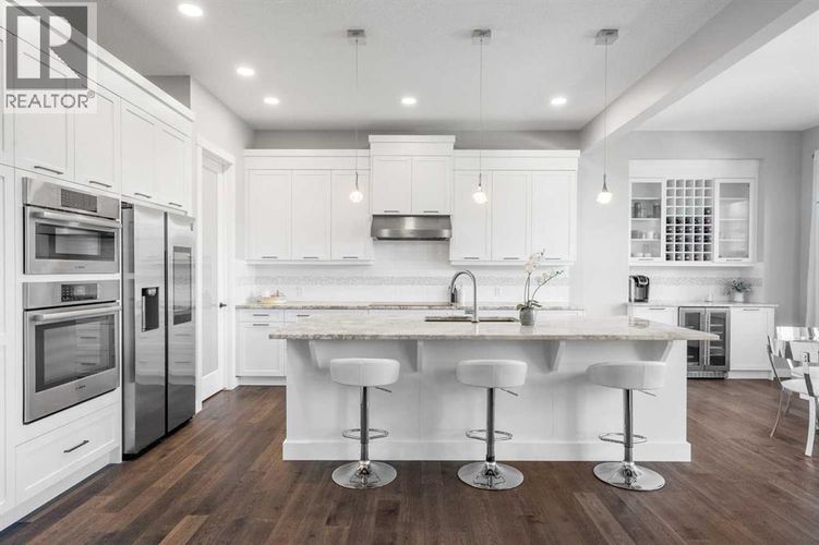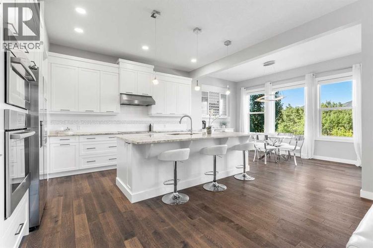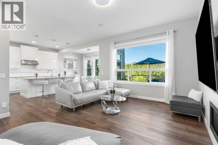BACKING ON TO A NATURAL RESERVE | SUNNY WEST YARD | OVERSIZED LOT | WALKOUT BASEMENT | Open House Saturday March 28, 3-5pm. Set on one of the most coveted lots in West Springs, this exceptional family home backs onto the serene West Grove Tree Preserve. With an oversized 6,300 sq ft west-facing yard, you can step out your back gate to winding pathways, picnic spots, expansive green spaces, forests and space for the kid to run and play. Custom built with endless upgrades, the home offers nearly 4,000 sq ft of living space with 5 bedrooms, 3.5 bathrooms, a fully finished walkout basement and the most beautifully landscaped yard. Inside, refined finishes and thoughtful design shine—from the main floor office to the 10 ft ceilings, to the vaulted bonus room. The chef’s kitchen has all of the details curated with built-in appliances, extended cabinetry, a coffee bar with a beverage fridge and a walk-through pantry with an additional fridge. The dining area overlooks the forest views – every window you look out, you see greenery. Upstairs, the primary suite features a spa-inspired ensuite with separate vanities, a free-standing bathtub and an oversized glass shower. The walk-in closet is fit with built-ins and conveniently offers direct access to the laundry room. Two additional, spacious bedrooms with walk-in closets share a main bathroom. An inviting bonus room completes the upper level with vaulted ceilings. The walkout level offers heated floors and adds two more bedrooms, a full bathroom, additional washer/dryer, a cozy rec space with a fireplace and a full basement bar area fit with a kegrator with two built-in beer taps. Right out the lower patio doors is a hot tub with an outdoor shower and a gas heater. This is the perfect space to relax and enjoy with family and friends. The home is finished with an impeccably landscaped yard, featuring an upper deck, a lower concrete patio, charming storage shed, raised garden boxes, and a private gate opening to the picture sque greenspaces. With air conditioning, irrigation, solar panels, water softener, vacuflo, oversized and heated garage and more, every convenience is included. Walking distance to top-rated schools and minutes to shopping, dining, downtown, and the mountains, this home offers the perfect blend of nature, community, and upscale living. Truly a forever home. (id:26452)