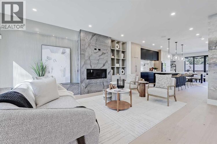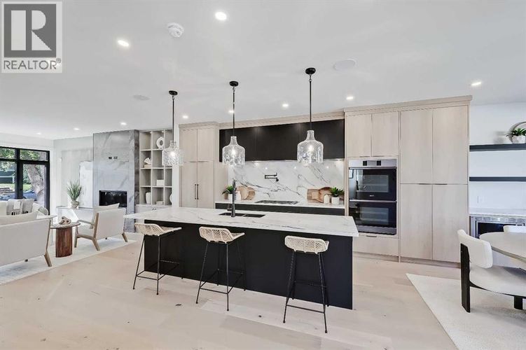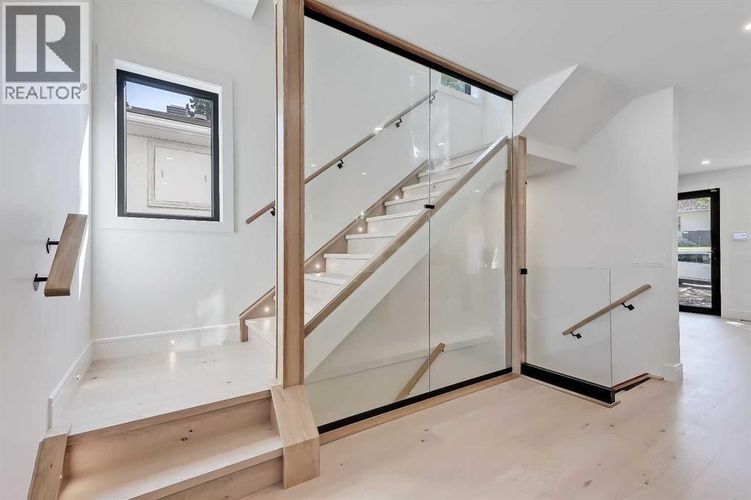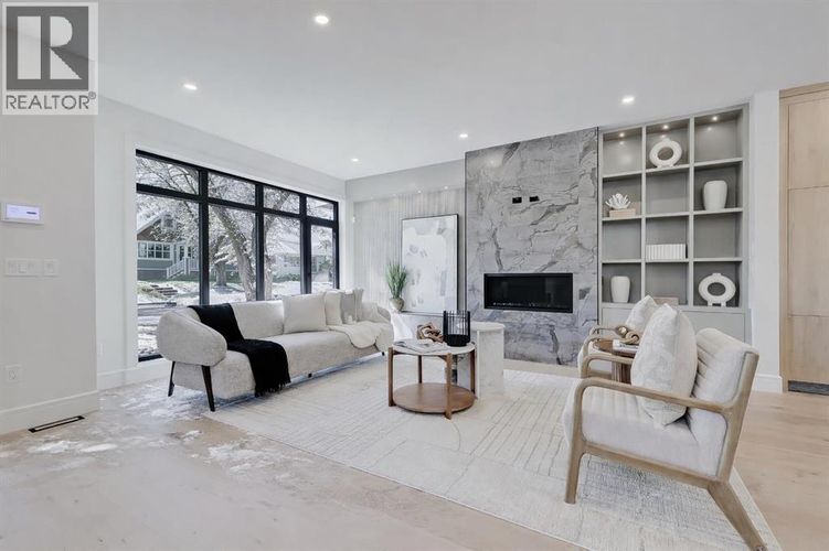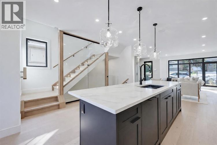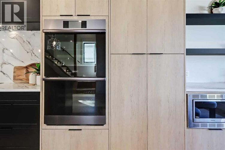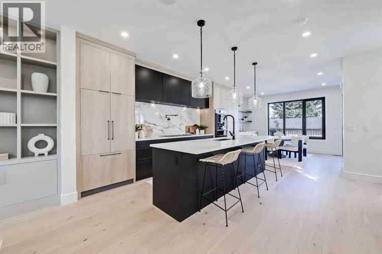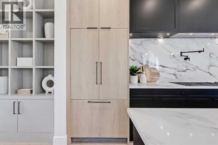 Tile detailing, modern finishes, designer lighting package, upgraded German-made KULU windows & doors…it’s everything you’re looking for in a luxury 3-STOREY SEMI-DETACHED INFILL! This designer home is located just off 26th Ave in the heart of Killarney – the ideal location for your new family home! The main floor opens into a welcoming foyer w/ built-in closet & bench, offering views into the spacious living room w/ a gas fireplace w/ full-height tile, as well as a stunning wood-panelled feature wall. Beautiful oak hardwood flooring leads you into the open-concept kitchen – fully equipped w/ an oversized island w/ quartz countertop, timeless shaker-style cabinetry w/ numerous lower drawers, & a contemporary flat-panel built-in cabinetry pantry. The designer kitchen is nicely finished w/ a full stainless steel appliance package, complete w/ a panelled French door refrigerator, a Dacor double wall oven, a gas cooktop w/ pot filler, & a built-in dishwasher. The custom built-ins continue into the dedicated dining room, w/ open shelving & lower cabinets w/ quartz counter for everyday convenience. Step out onto the back deck through the rear mudroom, complete w/ a built-in bench, coat cabinet, & tile flooring. Before you head upstairs, the stylish powder room is tucked away w/ a beautiful skirted vanity & vessel sink. Up the bright stairwell w/ glass wall awaits the primary suite – as sleek & modern as the rest of the home, w/ oversized windows, a private balcony w/ KULU door, & an extra-large walk-in closet! The chic ensuite features a dual vanity w/ a quartz countertop & a bank of lower drawers, a freestanding soaker tub, & a stand-up shower w/ full glass walls, rain showerhead, & bench. Two secondary bedrooms share the main 4-pc bath & the laundry room features a sink, upper cabinetry, hanging rod, tile backsplash, & a folding counter. A luxury home isn’t complete without a THIRD FLOOR LOFT, & this space has not been overlooked. More oversized windows bring in lots of natural light, shining across a spacious rec area w/ gas fireplace, full wet bar w/ extended quartz countertop, bar sink, & statement open shelving. A lovely sitting area w/ built-in desk overlooks the COVERED BALCONY & of course, there’s a full bath w/ fully tiled shower, too. The living space continues into the basement, w/ a full wet bar w/ quartz island, dual basin sink, & a designer tile floor, w/ a large family room, built-in media centre, a glass walled home gym w/ sports flooring, a 4th bedroom, & a full 4-pc bath. Killarney offers the perfect balance of community & convenience. From here, you’re within walking distance to Glendale School, Killarney School, & Bishop Carroll High. The CTrain is only 5 minutes away, making downtown access effortless. For sports enthusiasts, the Killarney Aquatic & Recreation Centre, Optimist Athletic Park, & Shaganappi Golf Course are all nearby. (id:26452)