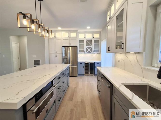 Experience the modern living in this masterfully crafted 4 BEDROOMS, 3 Full BATHS, *New Construction 2025*, situated on one of the nice and quiet streets. Built with impeccable attention to detail and superior craftsmanship, this home combines timeless design with today's most sought-after luxury finishes.The open-concept floor plan is bathed in natural light, featuring 5'' wide-plank hardwood floors, soaring ceilings, and a seamless flow between living, dining, and entertaining spaces. The gourmet kitchen is a chef's dream with top-of-the-line appliances, custom cabinetry, expansive quartz counters, and a grand center island,side counter with wine/beverage cooler. The luxurious primary suite offers a serene retreat with bespoke custom closets and a spa-inspired bath with double sinks, master shower and freestanding tub. Additional highlights include a dedicated home office or bonus bedroom room on ground floor,and designer-appointed baths,custom windows, quartz window sills,EV Charging. A fully finished basement offering even more living space. Step outside to extend the living space for year-round enjoyment of private backyard. Complete with attached garage, plenty of parking, this exceptional home combines thoughtful comfort, and an unbeatable location. Perfectly positioned near great schools, NYC bus, train, ferry transportation, and the area vibrant dining. Gorgeous high end build new home.