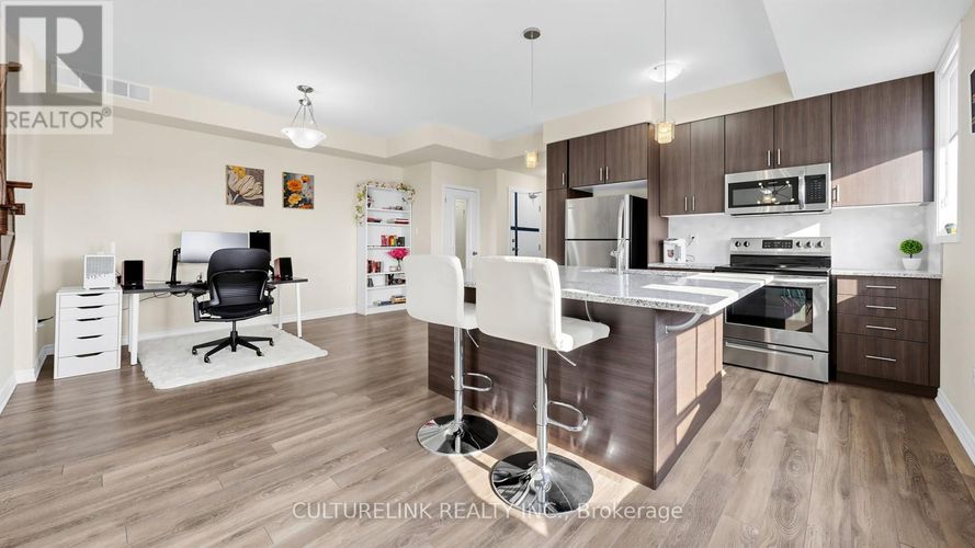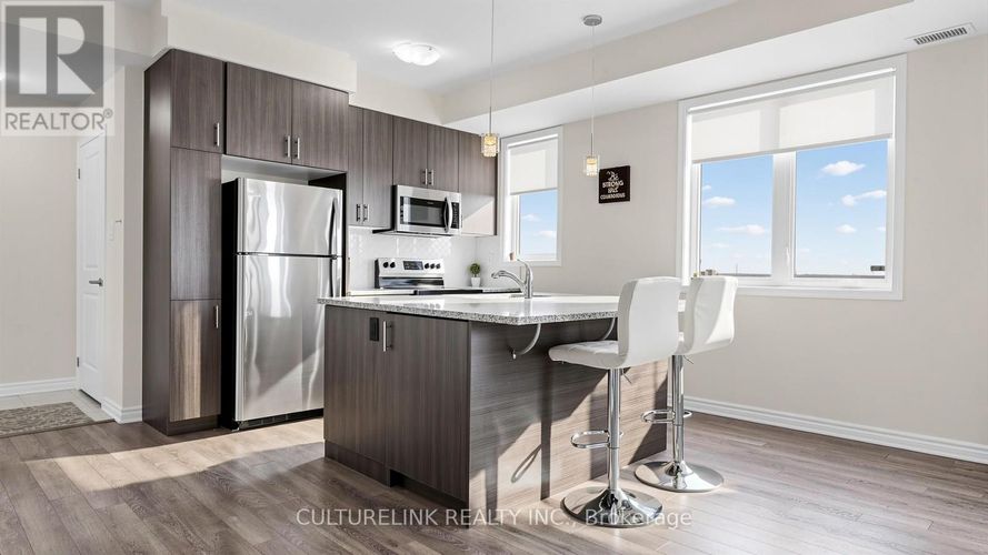 Stylish Mattamy Condo Townhome in the highly desirable Seaton, Pickering! This turnkey, bright, and spacious 1,656 sq.ft. home features 2 bedrooms and 3 bathrooms, 9-ft ceilings on the main floor, and large windows that provide abundant natural light throughout. The main-floor living room can be converted into a third bedroom, offering flexible living space. The open-concept kitchen boasts a large centre island, granite countertops, and stainless steel appliances, with a walkout to a spacious balcony-perfect for BBQ gatherings while enjoying unobstructed east-facing views. Elegant oak stairs add a refined touch to the home. The large primary bedroom offers two walk-in closets and a double-sink ensuite. Second-floor laundry provides added everyday convenience. Enjoy direct access to the garage and a private driveway. Situated in a family-friendly neighbourhood, this home is close to Seaton hiking trails, golf courses, Highways 401 & 407, Pickering GO Station, and Pickering Town Centre. An ideal opportunity for first-time buyers or young families. Don't miss this fantastic opportunity! (id:26452)