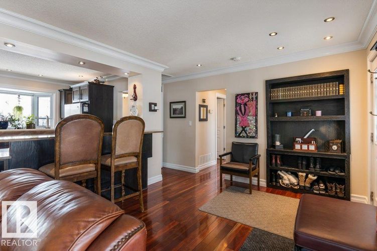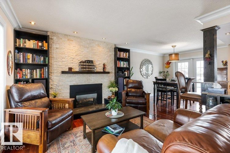 Beautifully updated bungalow on a desirable street in Mission, backing onto a park and school with fantastic views! Just steps to the Sturgeon River trail system and multiple walking paths, offering an incredible, walkable lifestyle only minutes to downtown St. Albert, shops, restaurants, and the famous outdoor Farmers’ Market. This renovated home features an open-concept layout with hardwood flooring throughout, gas stone facing fireplace, 2 bedrooms and a 3-piece bath on the main floor. The fully finished basement offers a spacious family room or potential 3rd bedroom, plus a 4-piece bath with steam shower. The private backyard is an entertainer’s dream with a large deck, firepit area, and professional landscaping surrounded by mature trees. Oversized heated garage with plenty of windows overlooking the park. A truly spectacular home in an unbeatable location! (id:26452)