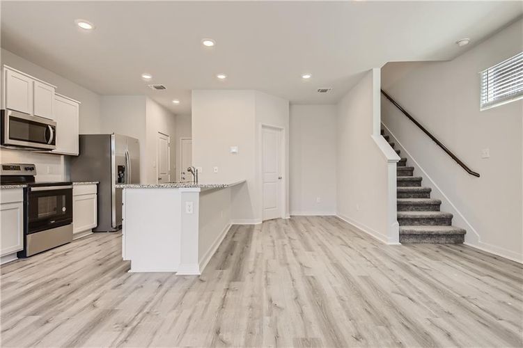 Discover modern living in this 3-bedroom, 2.5-bathroom condo located at 605 W South St #311, Leander, TX 78641. Spanning 1,543 square feet, this residence offers a spacious and contemporary layout designed for comfort and convenience. The main floor boasts a seamless flow between the living, dining, and kitchen spaces, enhanced by stylish tile and vinyl flooring. Equipped with stainless steel appliances, including a refrigerator, electric oven, microwave, and dishwasher, complemented by ample cabinetry and countertop space. A serene retreat featuring a generous closet and an en-suite bathroom with modern fixtures. Two well-appointed bedrooms share access to a full bathroom, providing flexibility for family, guests, or a home office. Central electric heating and cooling systems, along with ceiling fans, ensure year-round comfort. Includes a two-car garage with additional storage space. Enjoy tranquil views and direct access to nearby trails, perfect for outdoor enthusiasts. The ‘lock and go’ community design means no yard maintenance is required. Just minutes from HEB Plus (4-minute drive), Leander Station (4-minute drive), and major retailers like Costco and Whole Foods (9-minute drive);Dining & Entertainment: A variety of restaurants and entertainment options are within a short distance, catering to diverse tastes and preferences. This nearly new property offers the perfect blend of modern amenities, scenic surroundings, and a prime location in the heart of Leander. Experience the best of suburban living with urban conveniences at your doorstep.