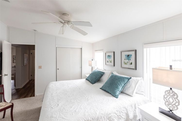 Immaculate 2 Bedroom, 2 Bath Home: This 2006 Jacobsen home reflects pride of ownership throughout. The primary bedroom features an en suite bath with spacious vanity sinks, a spacious walk-in shower, bidet, and dual closets.