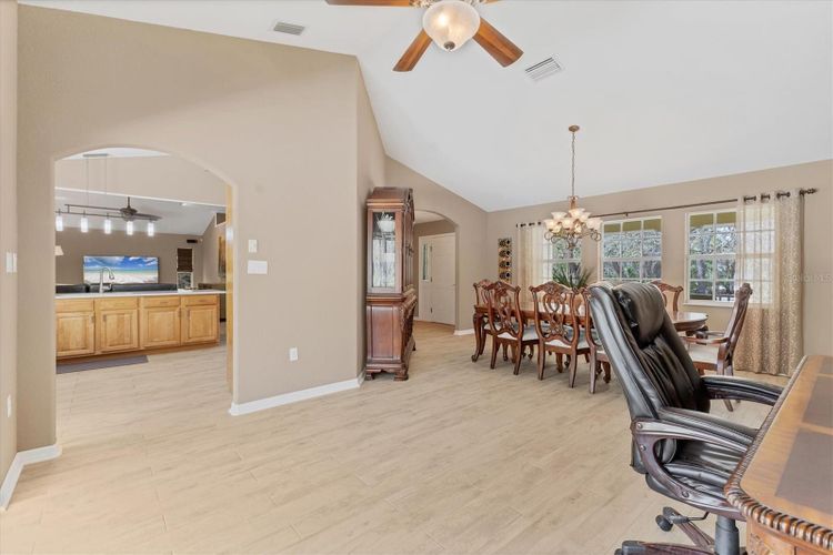 Please click on the walk thru video tour1 New Price! Welcome to your own private sanctuary of tranquility and this one comes with SALTWATER BOATING ACCESS TO PRISTINE CHARLOTTE HARBOR AND THE GULF OF MEXICO! Your dedicated easement is just steps way from your own dock and boat slip on Abhenry Waterway! You will be surrounded by the natural beauty of a Florida preserve on this acre and a half homesite offering a rare combination of privacy and all the amenities of in-town living. The FURNISHED custom home is a true 5 bedroom 3 bath or use the grand size of the 5th bedroom (26x12) as an in law/play room or OFFICE to match your lifestyle. High ceilings and architectural features bring a modern elegance and create a living environment that is as visually stunning as it is functionally practical. The private primary suite opens to the covered lanai and pool through French doors, has dual walk in closets and features a lavish bath with separate vanities, plenty of cabinet space, linen closet, whirlpool tub and a gorgeous, updated walk in shower with striking tile. The guest wing is separate with four good size bedrooms all with views of the preserve or pool and two full baths; one featuring pool access. The kitchen has been reimagined and is perfect for meal prep and effortless entertaining with beautiful unique granite counters, an extended 10' breakfast bar, newer stainless appliances, separate casual eating niche and a full unblocked view of the pool through your aquarium window. It opens to the oversized family room allowing family and guests to mingle with the cook or to join in. The Great Room and dining rooms greet you with warmth and the triple pocketing sliders allow access for you and your guests to the lanai and heated pool. There is plenty of space on the covered lanai with a summer kitchen and oversize pool deck all around the pool for sun and fun. Enjoy the gentle breeze and birdsong as you relax on the welcoming front porch. Other features include ROOF 2022, plank tile flooring in much of the home, enhanced lighting and fan fixtures, new pool cage screening and pool resurfacing, new Pentair variable speed pool pump, new motor for the pool heater. A long winding concrete driveway leads to your side loading garage and additional parking pad/turn around. Located just minutes to shopping, restaurants, schools, County Services Buildings, Tampa Bay Rays Spring Training and beautiful area beaches! Easy access to I75 via Kings Hwy and Ft Myers Regional airport. This extraordinary home is not just a residence; it's a lifestyle! Come check it out!