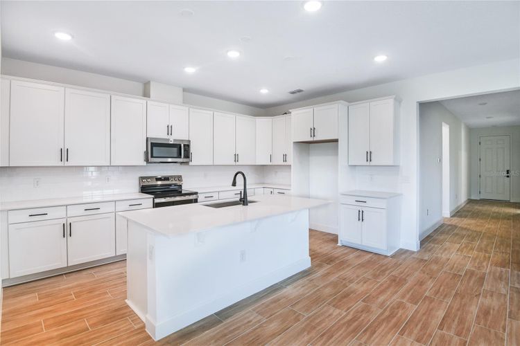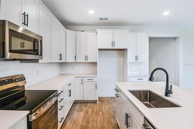 **Take advantage of special financing + Flex Funds on quick move-in homes** covered patio /White Kitchen Cabinets/42'' matte Black Fixtures /Stainless Steel Appliances/ Wood Look Tile Flooring/ Carpet in bedrooms/ Quartz countertops/ceiling fan pre-wire and pendants. Smart Thermostat, Garage door opener, and front door lock. **Options may vary by community, so see your sales associate for details. These offers are available for select homes on a first-come, first-served basis.