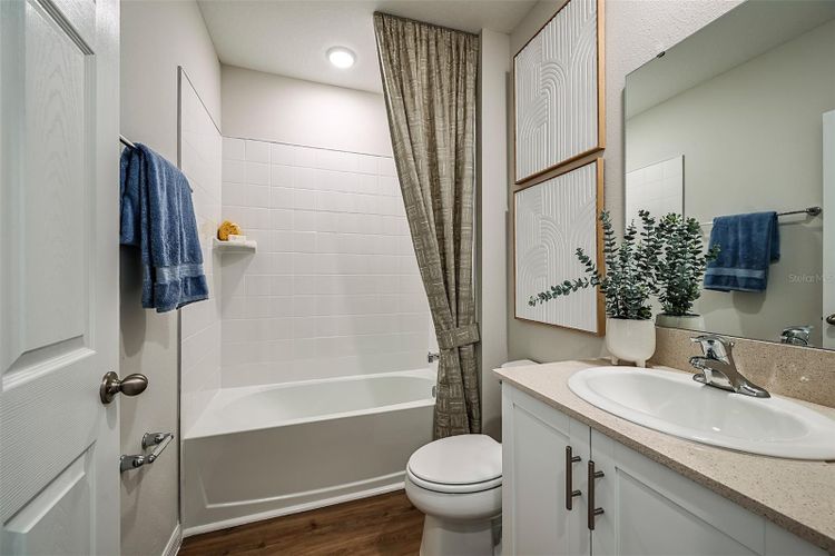 MODEL HOME FOR SALE! BELOW MARKET INTEREST RATES with use of Sellers Preferred Lender. Invite yourself into the Lucia, a two-story home with 5 bedrooms, 3 bathrooms and a private 2-car garage. Just off the foyer, you'll find a welcoming guest suite complete with a private bathroom, offering the perfect blend of comfort and privacy. The open concept living area, highlighted by luxury vinyl plank flooring, flows seamlessly into the kitchen, which features sleek quartz countertops, stainless-steel appliances and a spacious pantry. Sliding glass doors lead to a charming patio, ideal for outdoor relaxation in the Florida climate. Upstairs, the flexible recreation space and stylish master suite—with its walk-in shower, dual vanity and oversized walk-in closet—provide a serene oasis. The 3 additional bedrooms, full bathroom and laundry room equipped with brand new washer and dryer make everyday life convenient. With a smart thermostat with voice control, beautiful landscaping, and an eye-catching elevation, this home ensures both style and practicality. Contact or make an appointment for more details on interest rates.